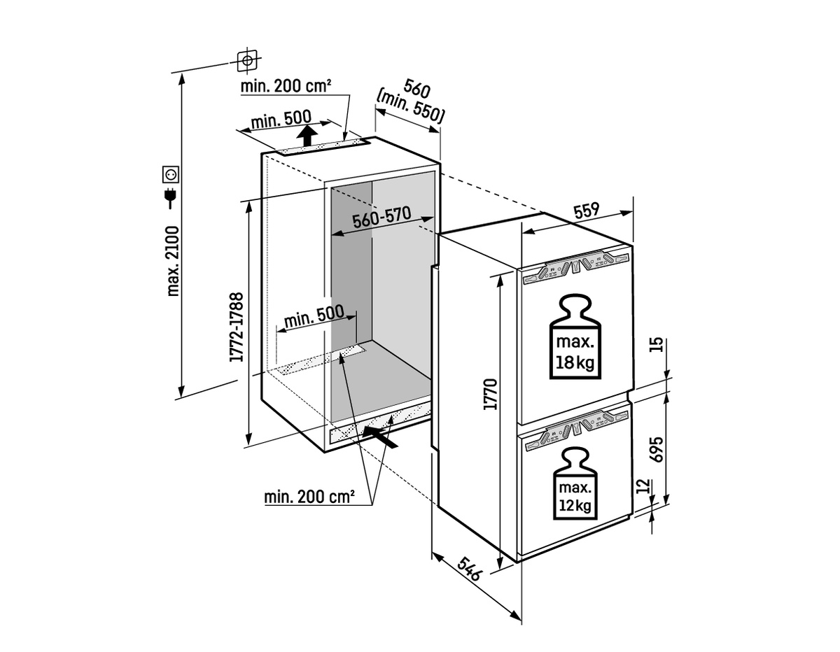 | Skupina výrobku: | Integrovatelná kombinovaná chladnička s mrazničkou s EasyFresh a NoFrost |