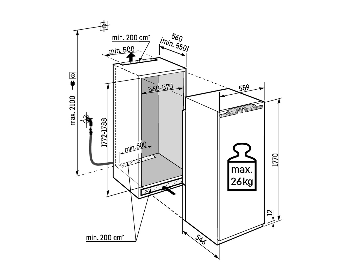 | Max. hmotnost dveří kuchyňské linky: | 26 |