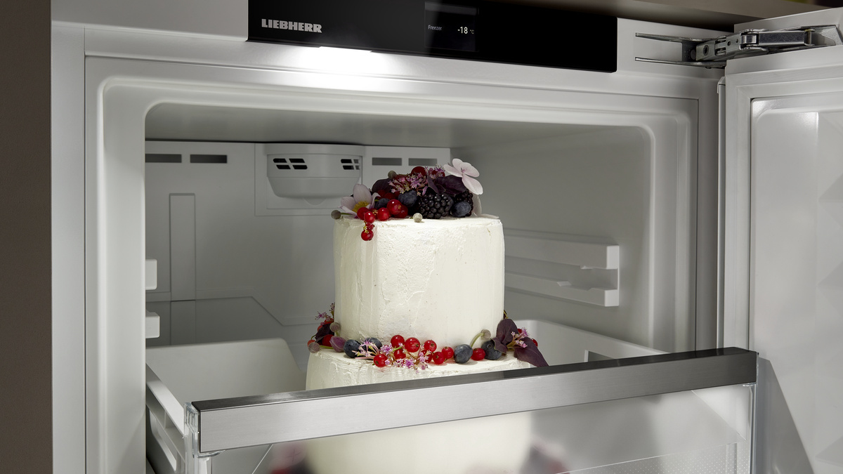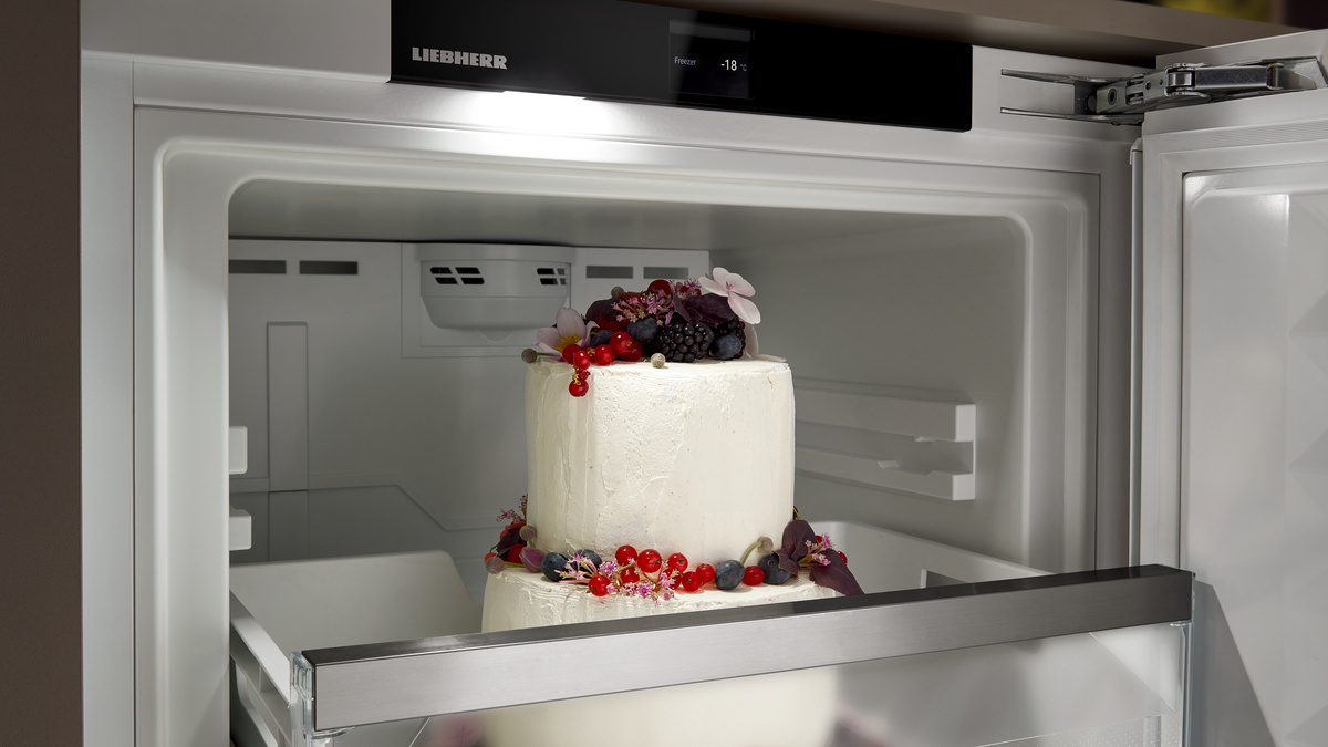 Když ve své mrazničce Liebherr otevřete zásuvky, potěší vás nejen pohled na vaše potraviny, ale také atraktivní osvětlení. To zajišťují výkonná ekologická LED světla s dlouhou životností. Osvětlení ještě více usnadňuje přehlednost obsahu a současně je nevšedním designovým prvkem.