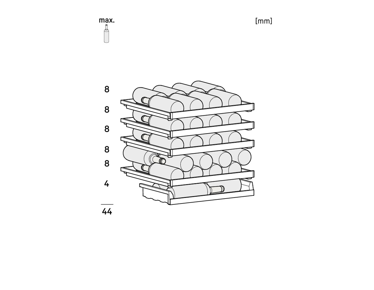 | Maximální kapacita lahví Bordeaux (0,75 l): | 44 |