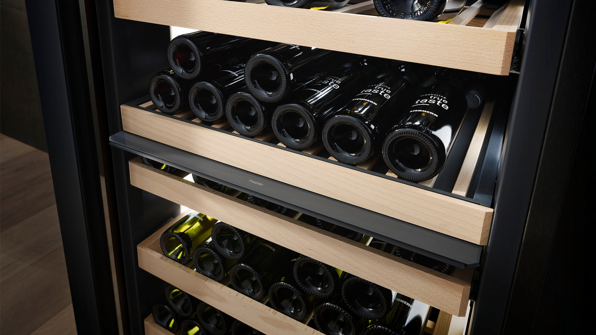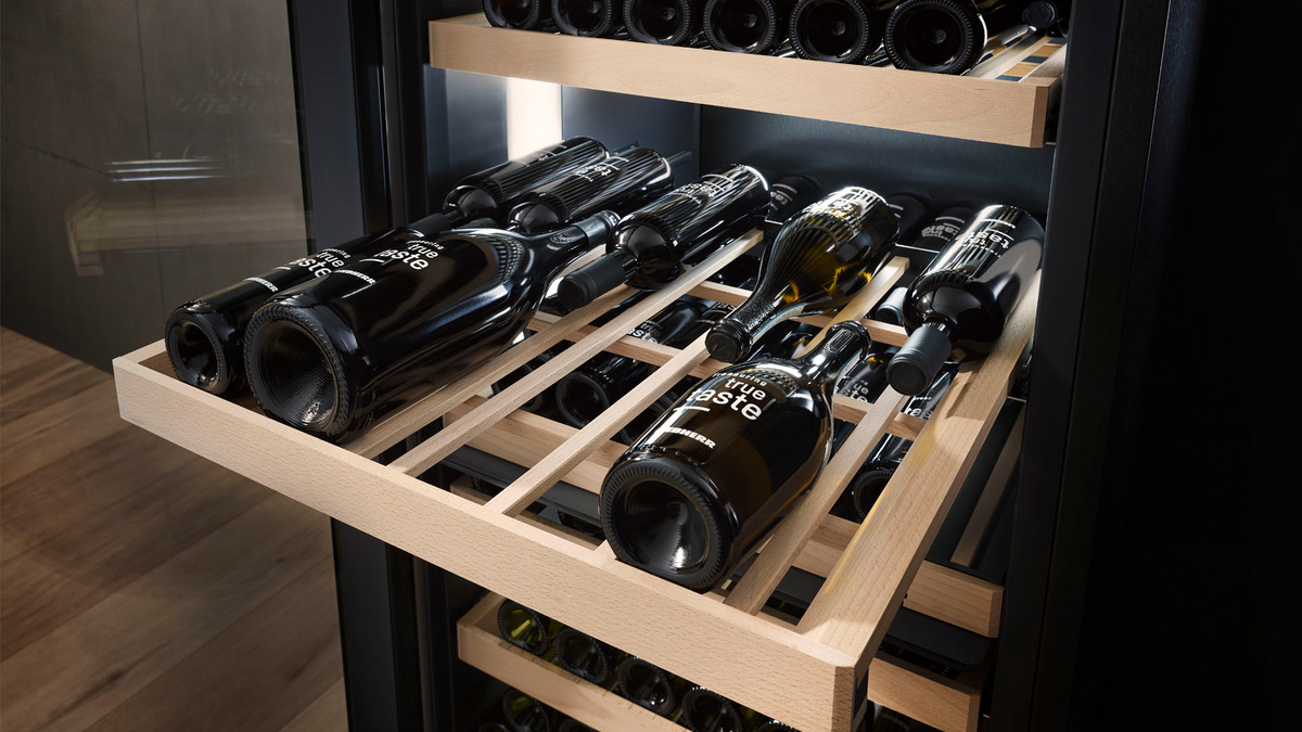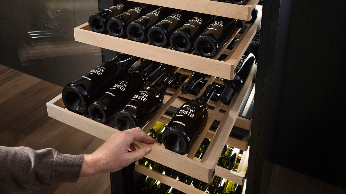 Maximální kapacita. S temperovací vinotékou Liebherr bude organizace vaší rozrůstající se sbírky vín snadná. Interiér byl navržen tak, aby byly lahve na dřevěných policích uloženy hrdly k sobě, díky čemuž lze naplno využít jeho kapacitu. To znamená, že i když se bude vaše sbírka cenných vín stále rozrůstat, vždy najdete místo pro další lahev. Můžete tak popustit uzdu své sběratelské vášni.