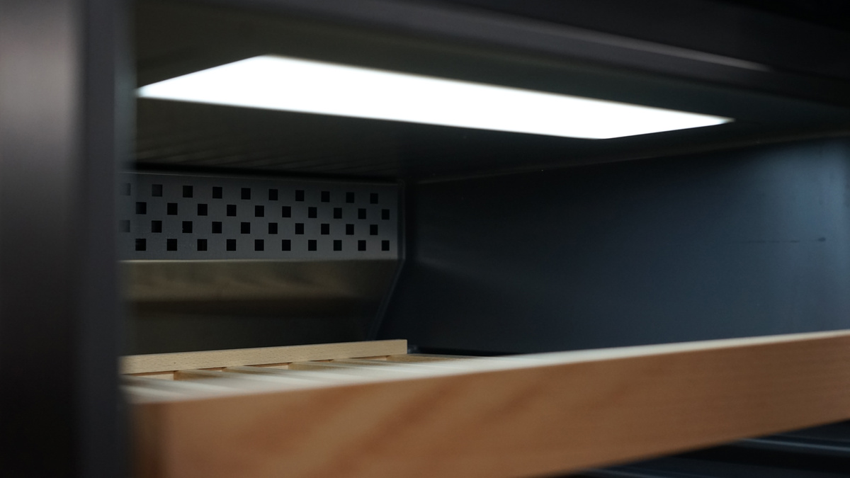 Ideální zázemí vaší sbírky vín: zadní panel v designu BlackSteel. Výrazná černá nerezová ocel dodává vnitřnímu prostoru temperovací vinotéky punc nepopsatelné kvality. Vzhled je ale jen jednou z jeho výhod, zadní stěna navíc zajišťuje vyváženou cirkulaci vzduchu a perfektně regulovanou vlhkost.