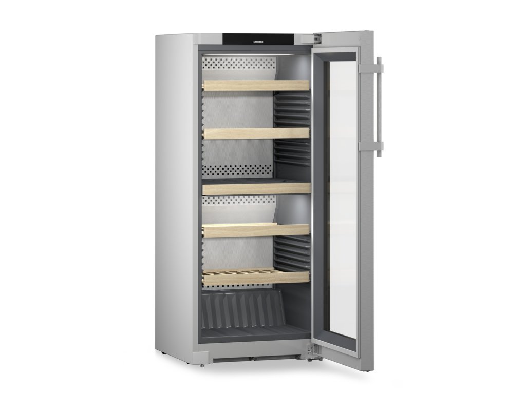 Krásné zvenčí i zevnitř. Vnější provedení vinotéky přitahuje pozornost, ale stojí za to nahlédnout i dovnitř. Kombinace dřevěných polic a zadního panelu z nerezové oceli SmartSteel dodává modelům řady GrandCru Selection podmanivou krásu, i když jsou prázdné. Technické výhody jsou navíc stejně tak promyšlené jako design. Například povrch zadního panelu zajišťuje vyváženou cirkulaci vzduchu.