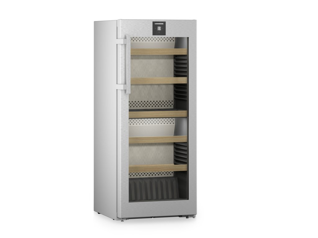 Víno potřebuje ticho a klid. Proto naše vinotéky zaručují jemné uložení s mimořádně tichým kompresorem speciálně vyvinutým společností Liebherr a stabilními policemi vyrobenými z pevného bukového dřeva. Víno tak bude moci zrát v klidu a nerušeně.