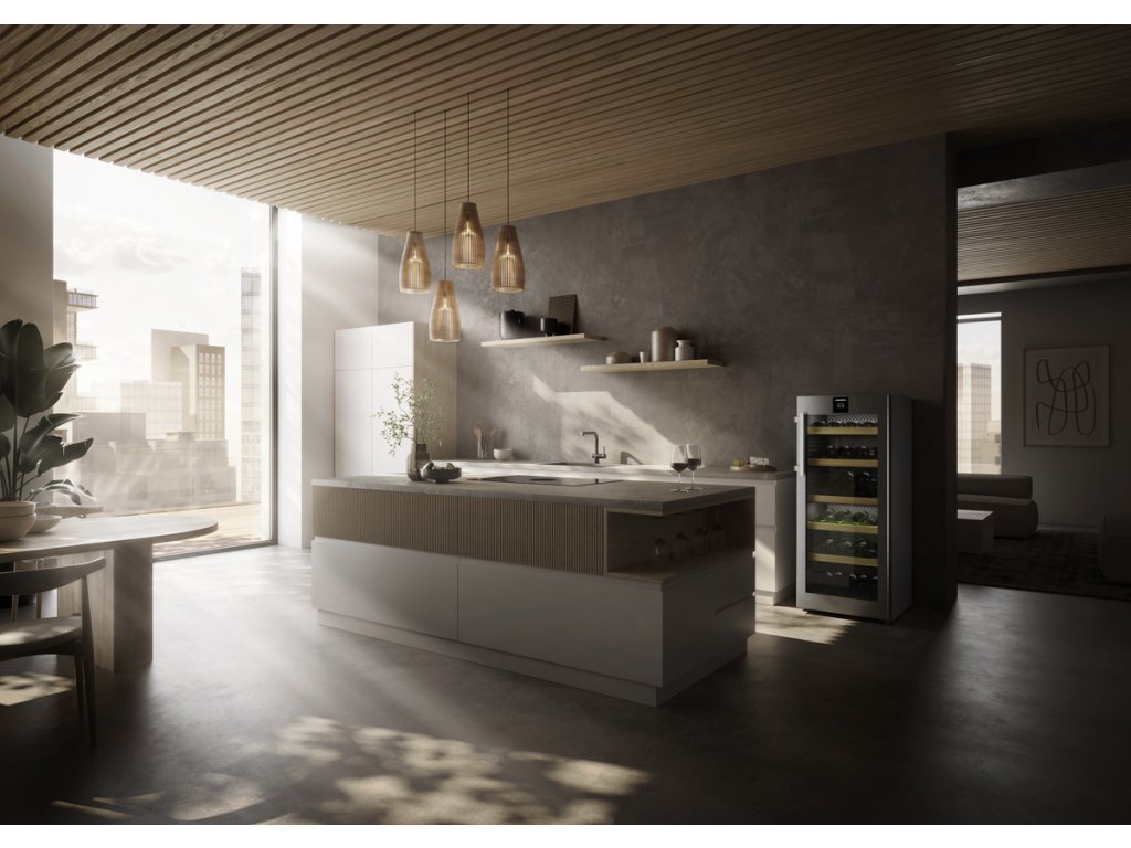 Prezentační osvětlení vaší temperovací chladničky se postará o to nejlepší předvedení vašeho vína. U spotřebičů s prosklenými dveřmi může světlo zůstat zapnuté, i když jsou dveře zavřené. Vaše sbírka vín tak může zaujmout každého, kdo půjde kolem. Jas osvětlení lze individuálně upravit na displeji a v aplikaci SmartDevice.