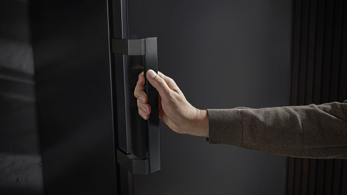 Potěšení z otevření se nemusí týkat jen vína, ale také dveří – díky elegantnímu, černému, štíhlému madlu. Mnoho rukou se podílelo na zajištění jeho pohodlného používání a výsledkem je tedy ergonomické madlo, které výjimečně skvěle padne do každé ruky. Vinotéku GrandCru tak budete používat velice rádi.
