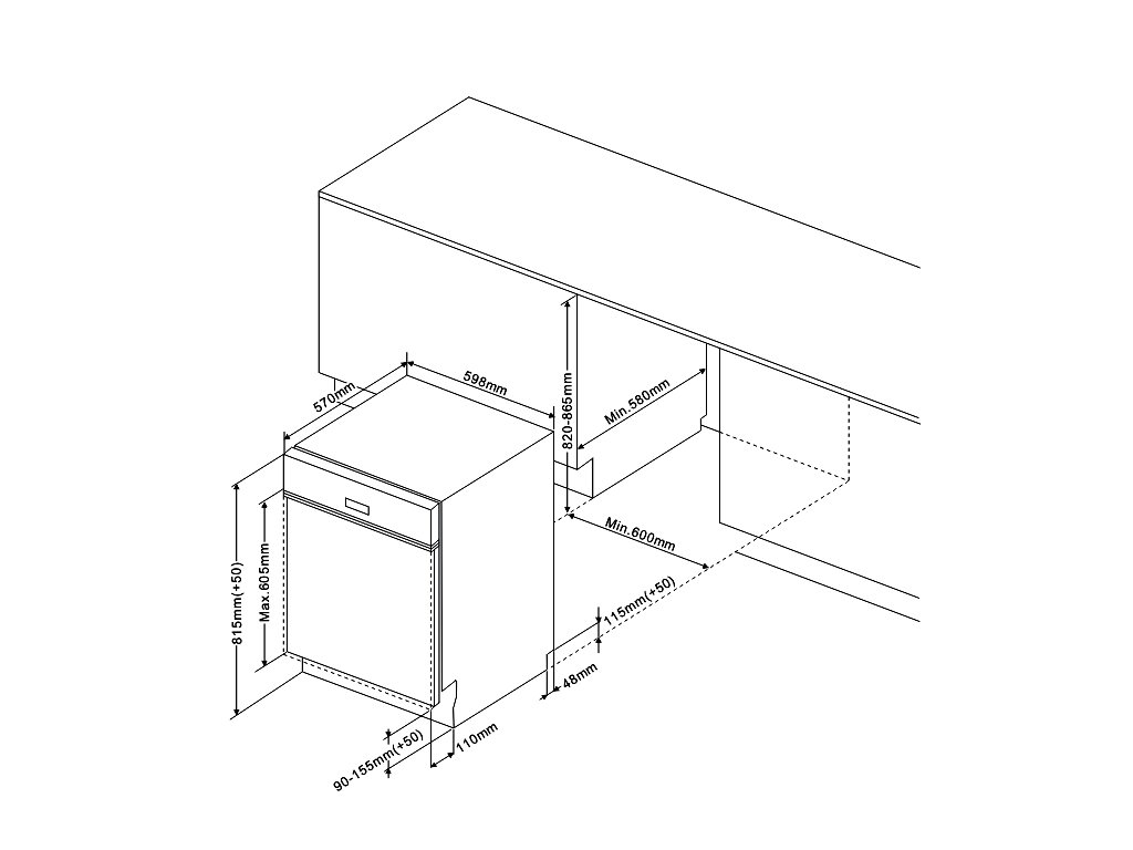 Kapacita: 14 jídelních sad ve 3 úrovních (spodní koš horní koš příborová zásuvka)