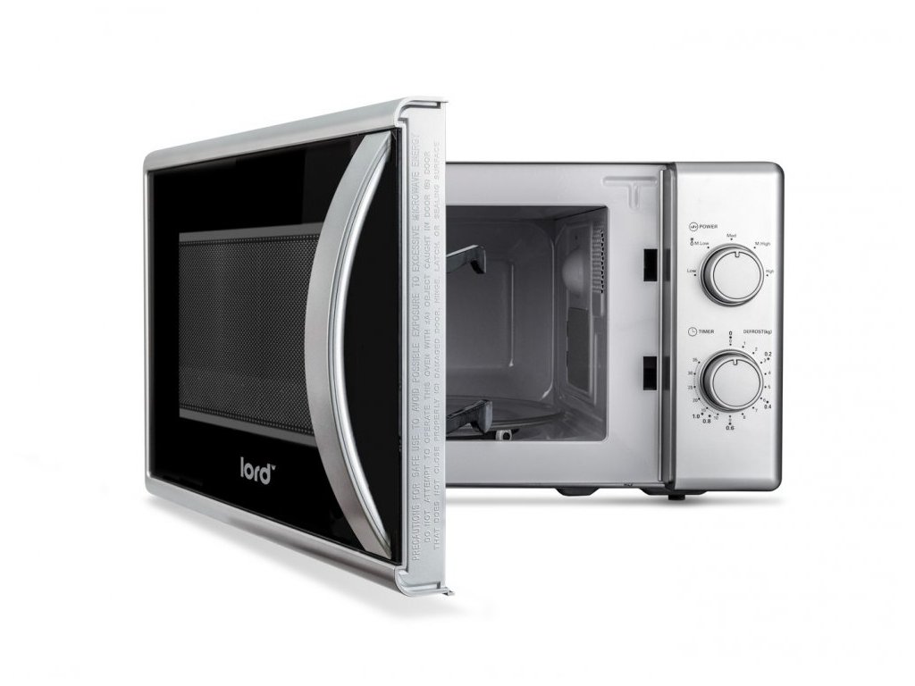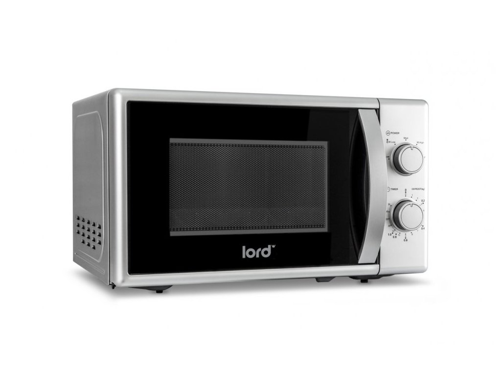 Mikrovlnná trouba LORD M7 ve stříbrném provedení disponuje objemem 20 litrů a výkonem 800 W. Troubu je možné nastavit na pět různých úrovní výkonu. Nechybí ani funkce rozmrazování a časovač až na 35 minut. Ovládání je velmi jednoduché a intuitivní.