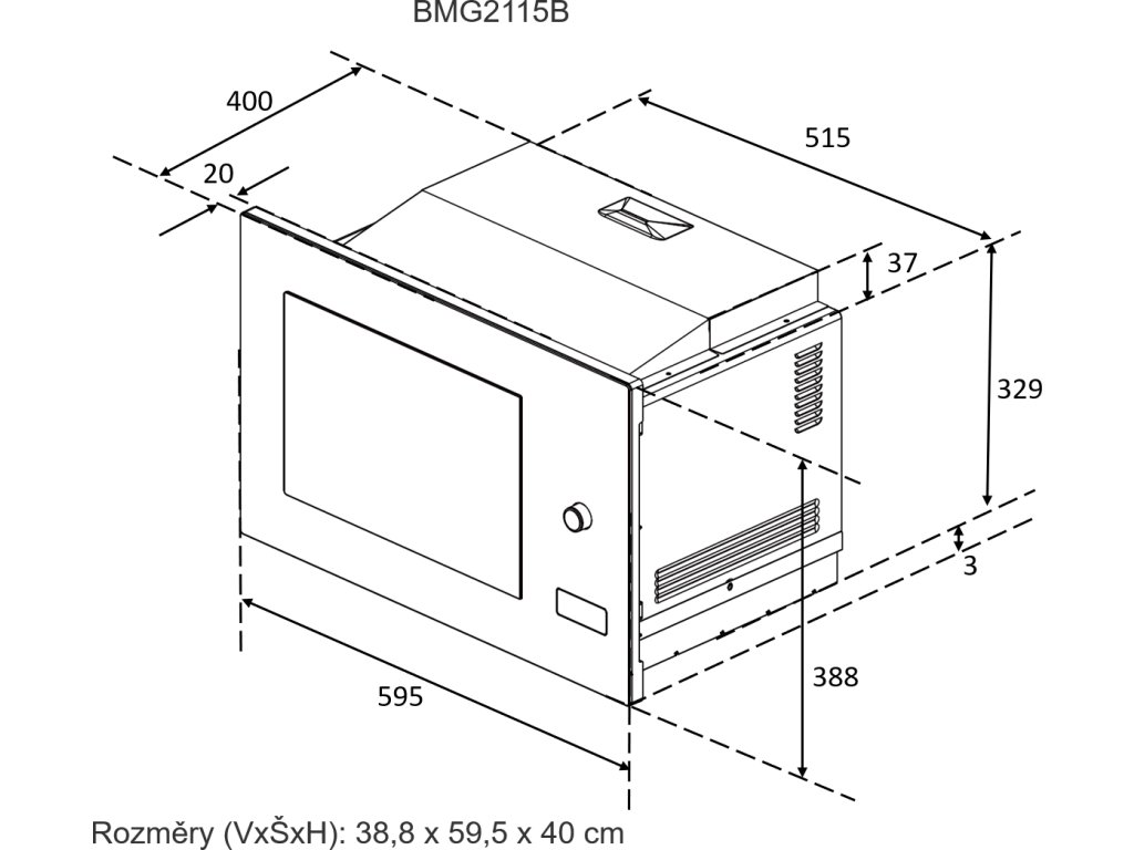 | Rozměry otvoru pro vestavbu (V x Š x H): | 38 x 56 x 50 |