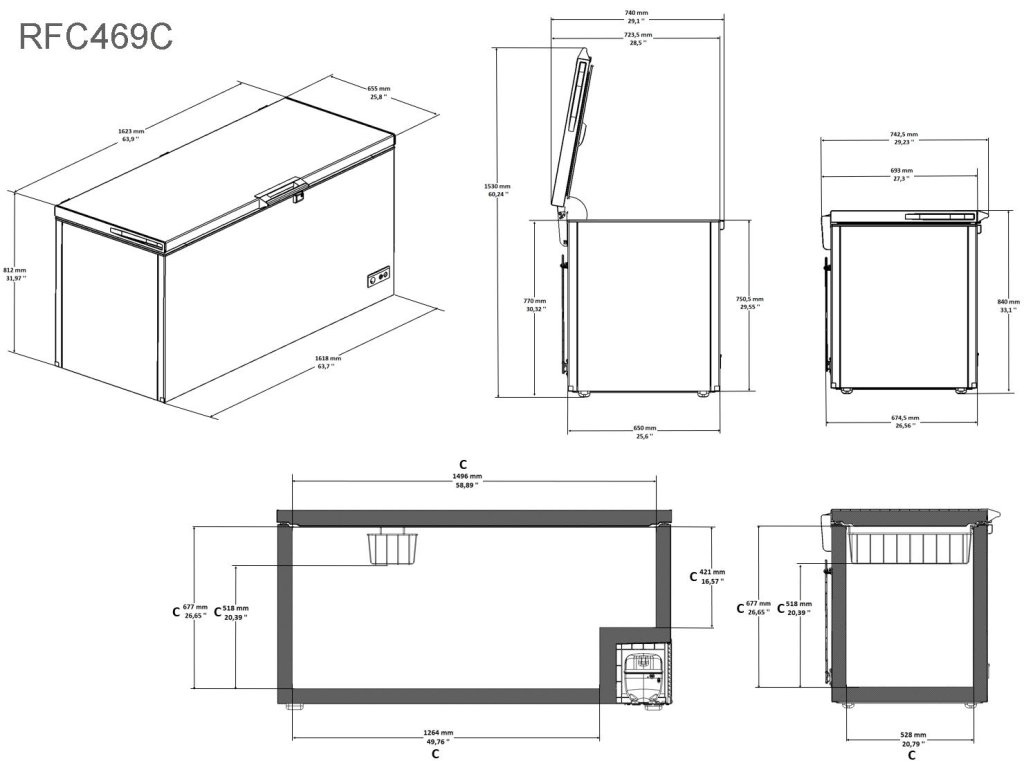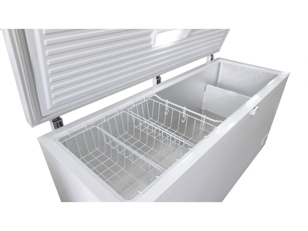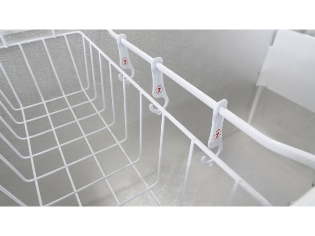 Romo RFC469C nabízí dostatek místa pro uložení objemných potravin, což oceníte nejen v domácnosti, ale i v komerčních provozech. Dva úložné koše a tři háčky na zavěšení potravin umožňují přehledné uspořádání obsahu. S mrazicím výkonem 18 kg za 24 hodin rychle zamrazíte čerstvé zásoby a při výpadku proudu mraznička udrží potraviny zmražené až 35 hodin, což vám poskytne jistotu i v nenadálých situacích.