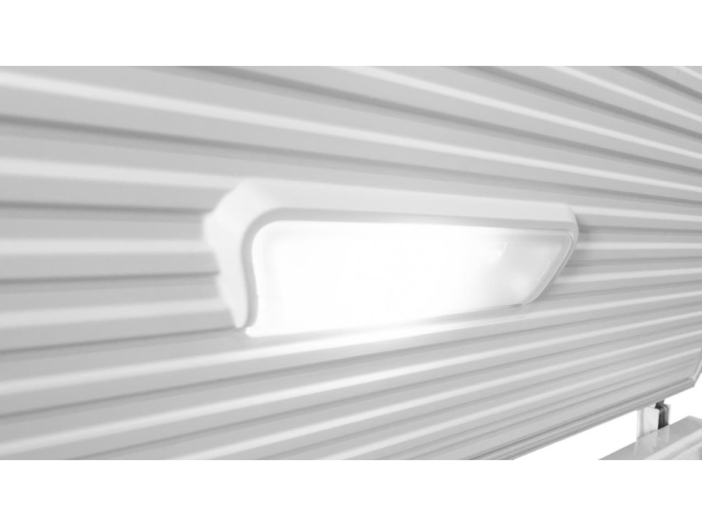 Romo RFC469C je vybavena vnitřním LED osvětlením, které poskytuje přehled o uložených potravinách i za šera. Vnější madlo se zámkem zajišťuje bezpečné uzavření mrazničky, což oceníte v domácnostech s dětmi i v rušných provozech. Kontrolky napájení a varování před vysokou teplotou vás spolehlivě informují o stavu mrazničky, což zajišťuje bezpečný a komfortní provoz.