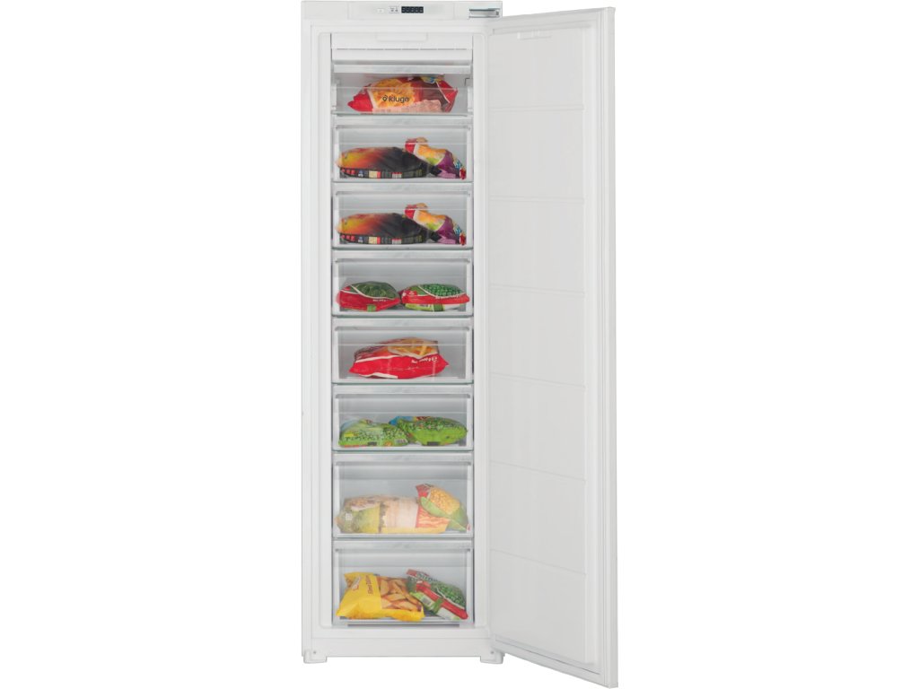 Mraznička nabízí chytré rozdělení vnitřního prostoru: 6 šuplíků a 2 přihrádky s výklopným čelem. To vám umožňuje snadno uspořádat a přistupovat k vašim potravinám. Vnitřní LED osvětlení zajistí, že vždy rychle a snadno najdete to, co hledáte, i při slabém osvětlení.