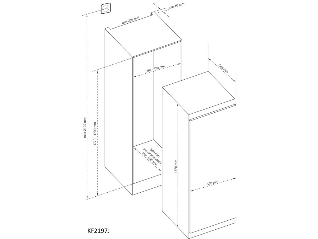 Vestavná šuplíková mraznička Kluge KF2197J je ideálním řešením pro každou moderní kuchyni. S celkovým užitným objemem 197 litrů a spolehlivým systémem NO FROST tato mraznička zajistí, že všechny vaše potraviny budou uchovány při bezpečné teplotě. Elektronický ovládací panel s LED symboly a možnost změny směru otevírání dveří přinášejí maximální pohodlí a flexibilitu.