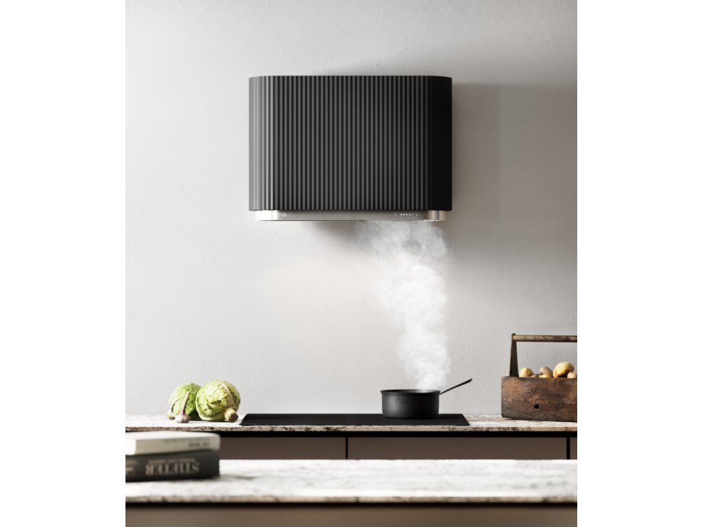 Odsavač Mono o šířce 80 cm v atraktivním černém designu se snadno začlení do vaší kuchyně a nabízí efektivní provoz díky svému výkonnému invertorovému motoru. Ten zajišťuje tichý a účinný odvod par s možností nastavení až čtyř výkonnostních stupňů včetně extra silné funkce BOOST, která dosahuje výkonu až 690 m³/h. S hlučností pouhých 42-57 dB(A) bude vaše kuchyně oázou klidu. Intuitivní bezdotykové ovládání gesty a pohodlný dálkový ovladač znamenají, že obsluha odsavače je snadná a intuitivní.
