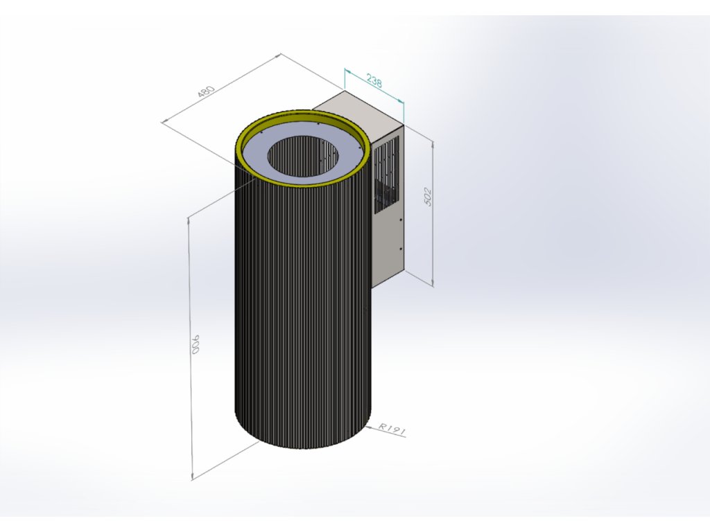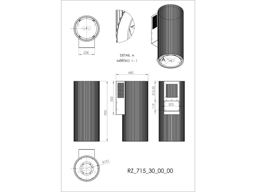 - Rozměry (Š x V): 382 x 900 mm, hloubka s komínem 480 mm