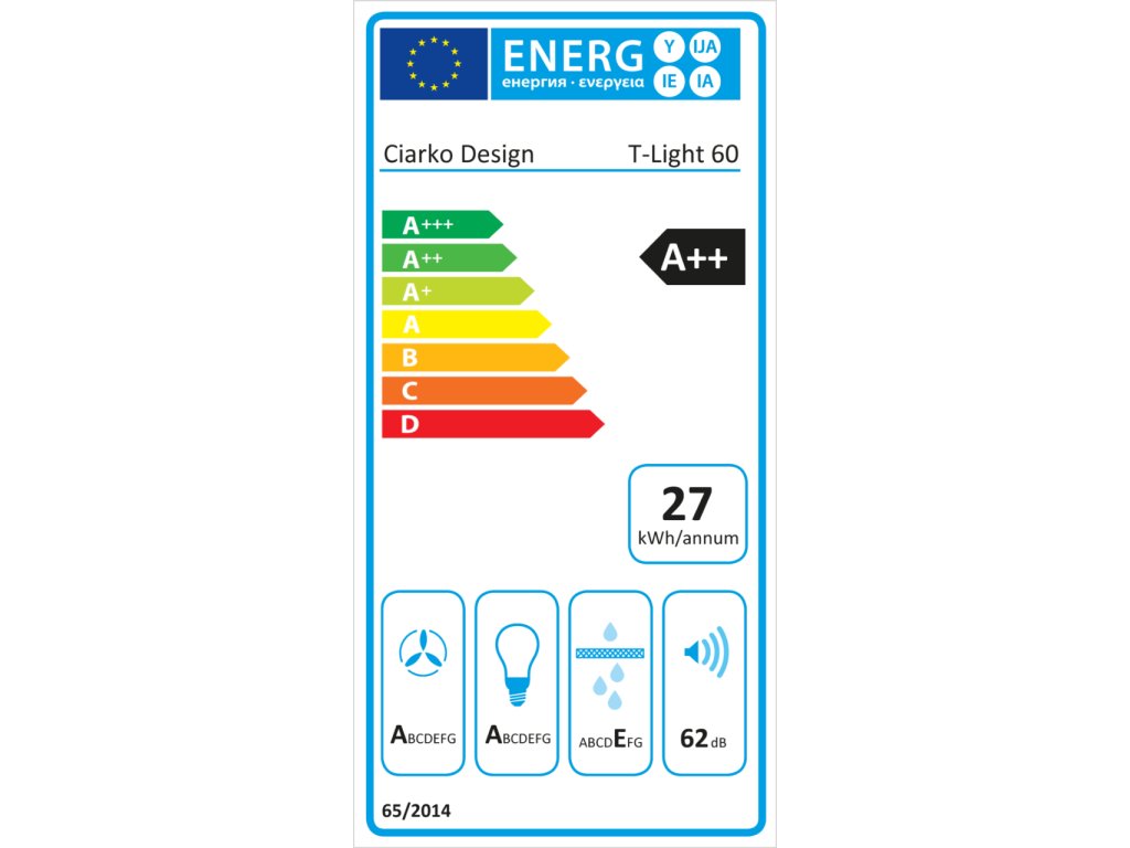 Odsavač T-Light Black se pyšní roční spotřebou energie pouze 26,8 kWh a energetickou třídou A++, což z něj činí jeden z nejúspornějších odsavačů na trhu. Vybaven je velkým LED panelem s regulovatelnou intenzitou osvětlení. Po nainstalování aktivního uhlíkového filtru je možné odsavač provozovat i v režimu recirkulace.