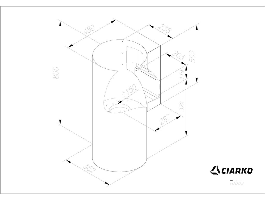 - Průměr tubusu odsavače: 38,2 cm