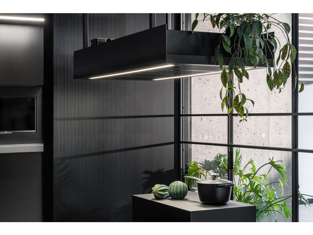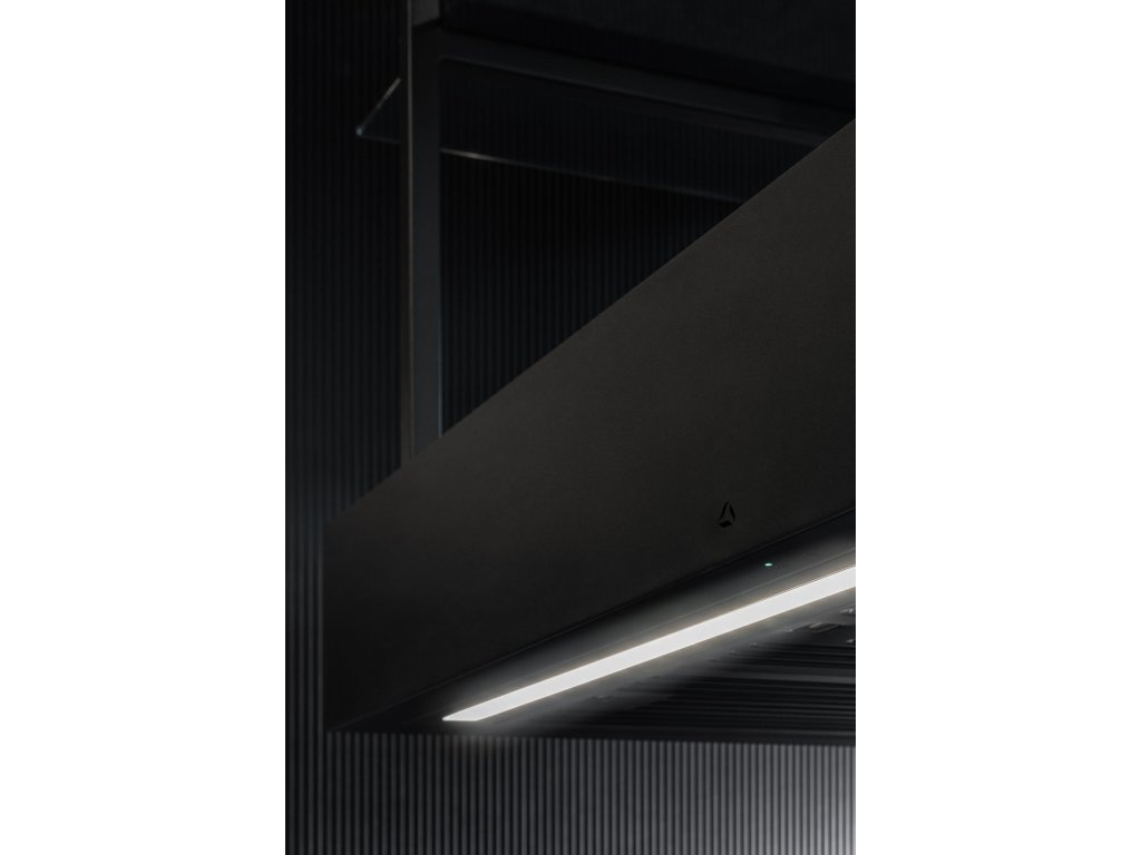 Model Minimal 1.90 je víc než jen odsavač par – je to designový klenot. S ostrými liniemi a luxusní matně černou povrchovou úpravou je tento odsavač par navržen tak, aby upoutal pozornost a dokonale doplnil moderní kuchyňské interiéry. Skleněná police nad odsavačem nejen zvyšuje estetickou hodnotu, ale také dodává celé konstrukci lehkost a vzdušnost, čímž se Minimal 1.90 stává středobodem každého prostoru.