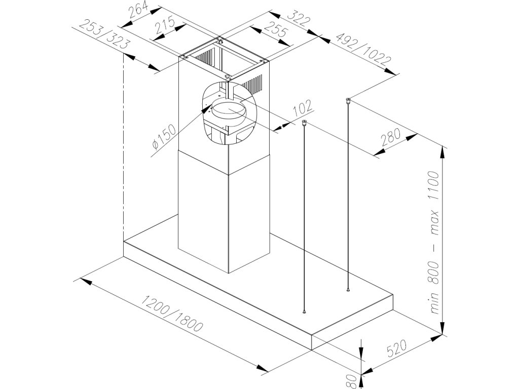 Odsavač ostrůvkový MINIMAL 2.120 Black CDW1202C+U