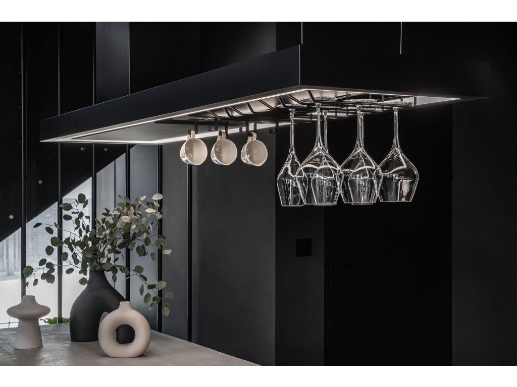 Přineste do své kuchyně dokonalou harmonii stylu a výkonu s ostrůvkovým odsavačem par Minimal 2.120 od Ciarko Design. Tento luxusní model v matné černé barvě nejen zajišťuje maximální účinnost odsávání, ale také nabízí jedinečný designový prvek v podobě integrovaných držáků na sklenice. S tichým a výkonným invertorovým motorem a inovativním ovládáním je tento odsavač par neocenitelným doplňkem každé moderní kuchyně.