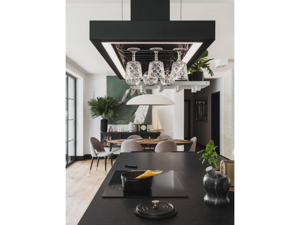 Přineste do své kuchyně dokonalou harmonii stylu a výkonu s ostrůvkovým odsavačem par Minimal 2.180 od Ciarko Design. Tento luxusní model v matné černé barvě nejen zajišťuje maximální účinnost odsávání, ale také nabízí jedinečný designový prvek v podobě integrovaných držáků na sklenice. S tichým a výkonným invertorovým motorem a inovativním ovládáním je tento odsavač par neocenitelným doplňkem každé moderní kuchyně.