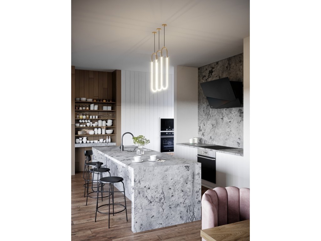 Vdechněte své kuchyni nádech uměleckého konstruktivismu s odsavačem par Trio Black od Ciarko Design. Tento šikmý komínový odsavač v kombinaci černého skla a černě lakovaného nerezu spojuje moderní design s inovativními funkcemi, jako je intuitivní ovládání gesty a energeticky úsporné osvětlení WarmLED. S výkonným invertorovým motorem a možností regulace světla je Trio Black dokonalou volbou pro každou stylovou kuchyni.