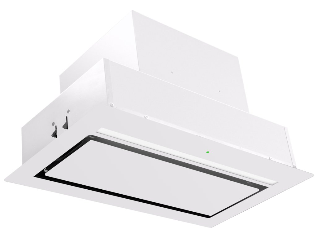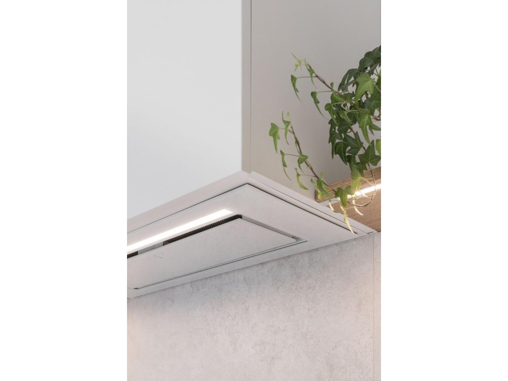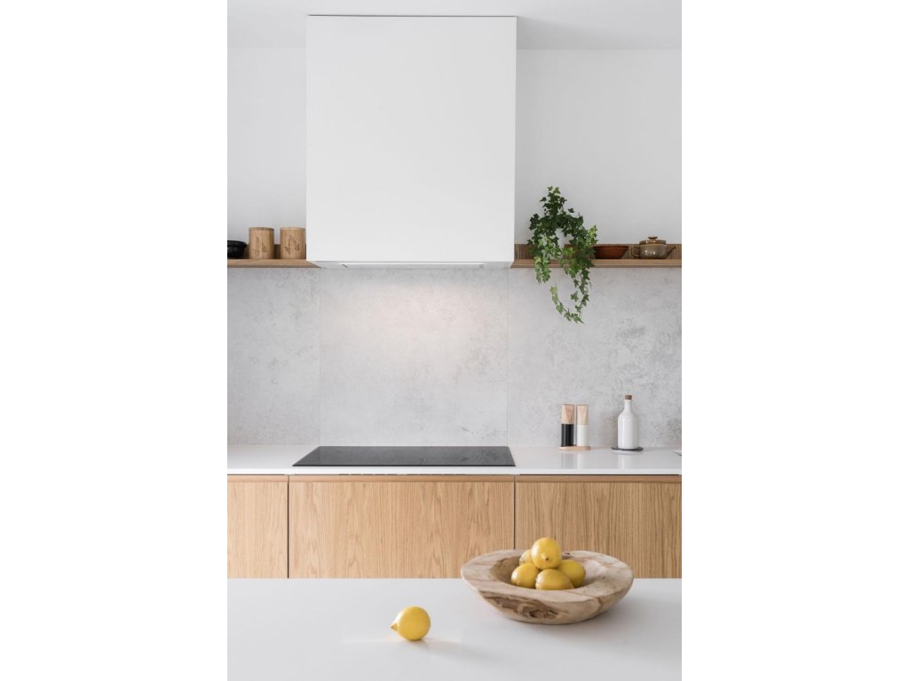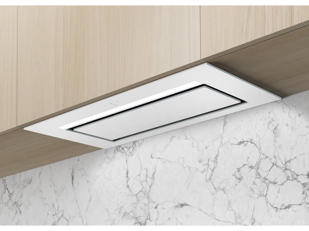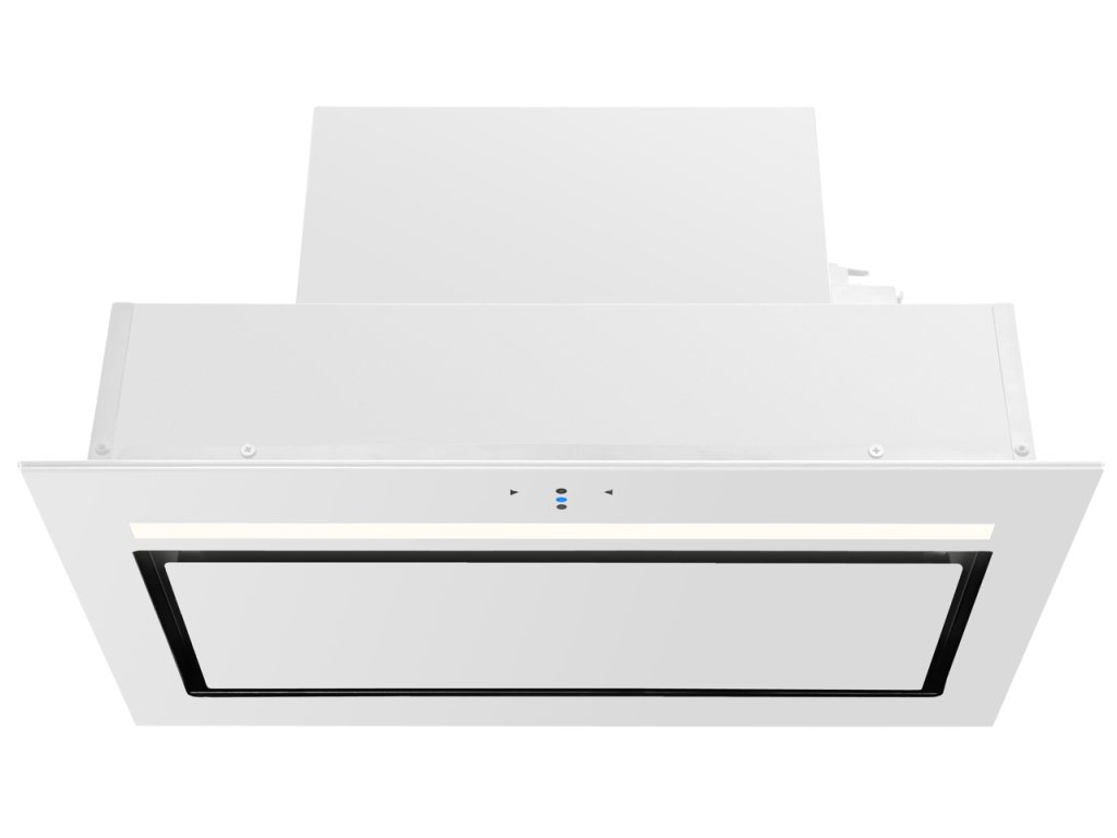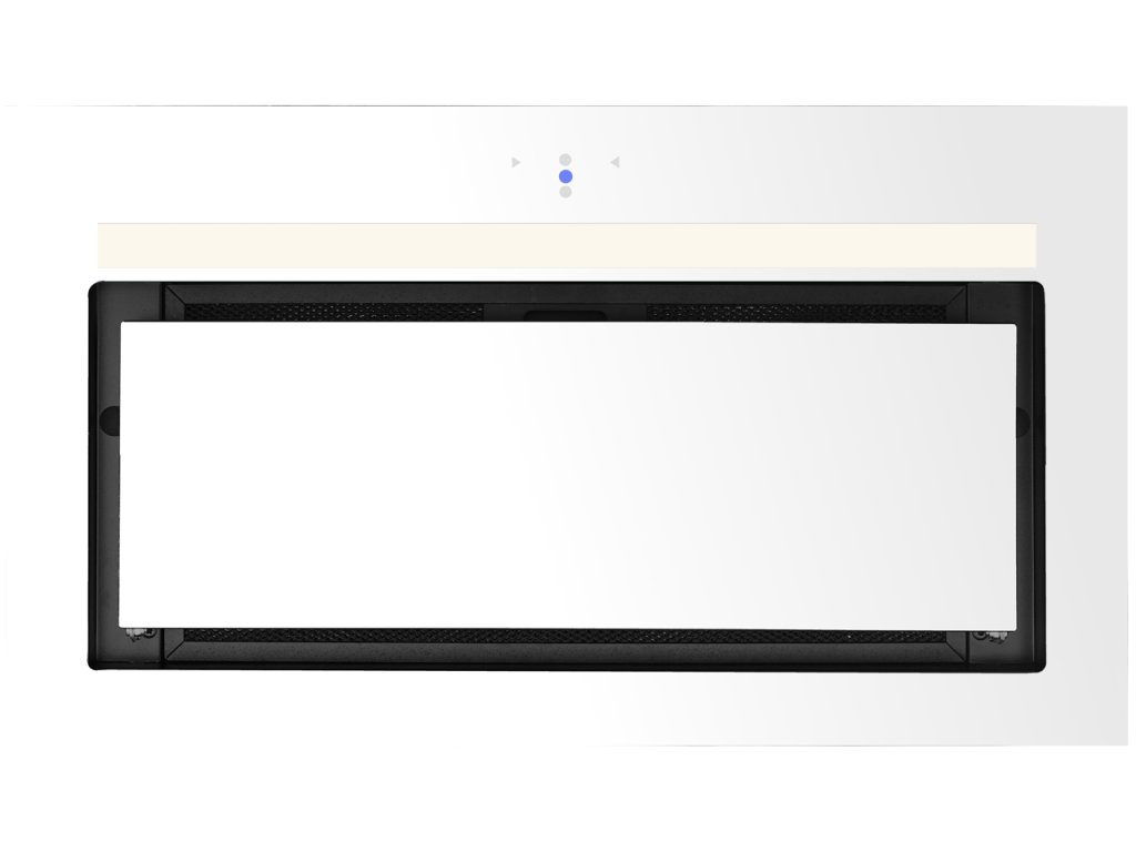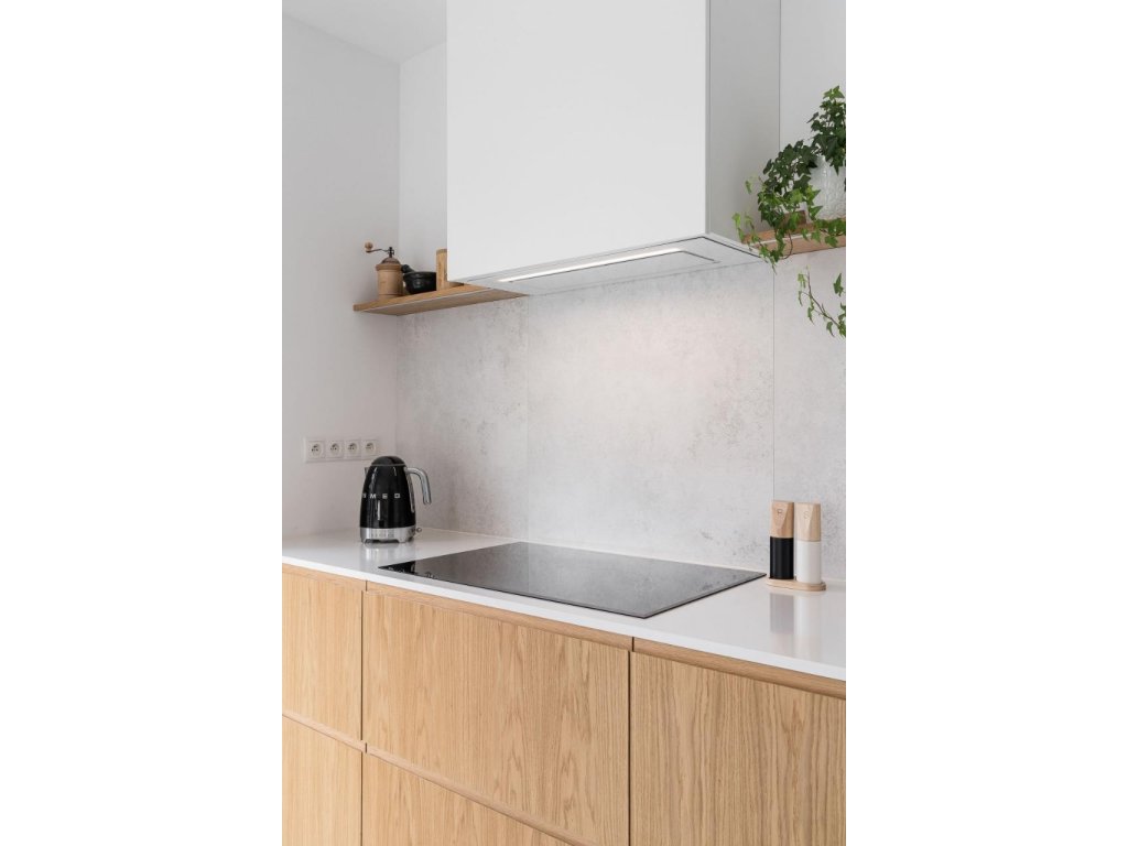 Aura 55 White je navržen tak, aby splynul s vaší kuchyní. Díky plně vestavnému provedení a elegantní kombinaci bílého skla a matného kovu perfektně ladí se světlými interiéry. Bezdotykové ovládání gesty zajišťuje snadné a čisté ovládání bez otisků prstů, zatímco tradiční dálkový ovladač poskytuje pohodlí pro ty, kteří preferují klasické ovládání.