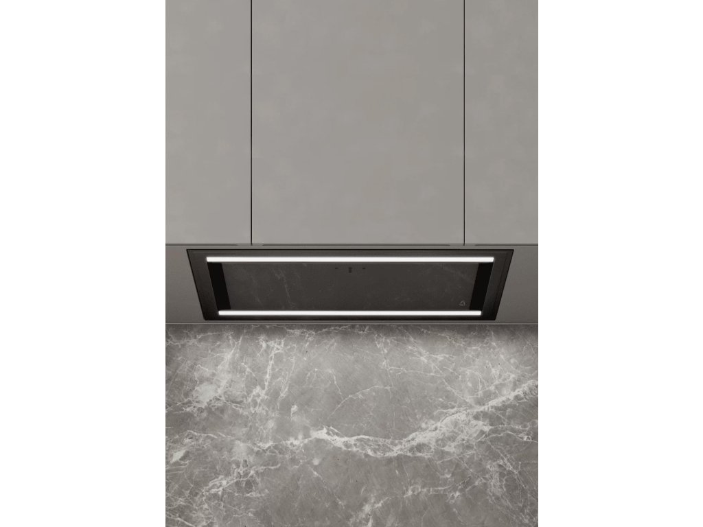 Odsavač Duo 55 Black je navržen tak, aby se nenápadně integroval do vaší kuchyně. Vestavné provedení v kombinaci černého skla a černě lakovaného nerezu zajišťuje, že odsavač zapadne do jakéhokoliv stylu tmavého interiéru. Bezdotykové ovládání gesty rukou vám umožní snadno nastavit výkon bez nutnosti dotýkat se odsavače, čímž se eliminují nežádoucí otisky prstů, které je nutné neustále čistit. Pro tradiční uživatele je k dispozici i dálkový ovladač.