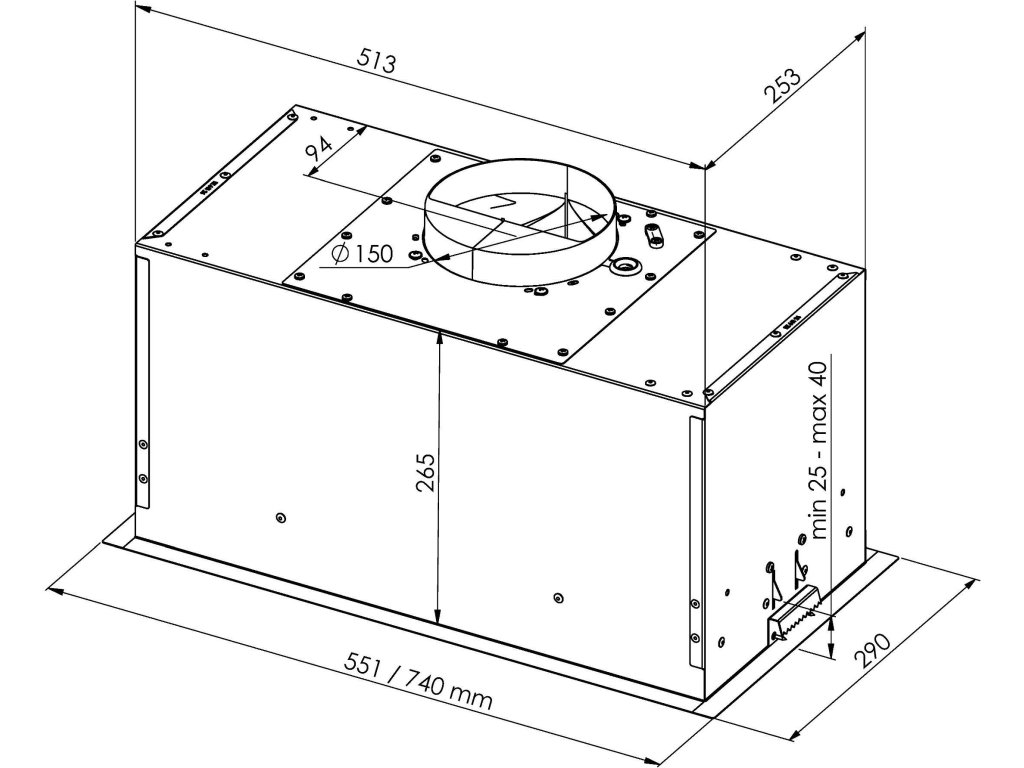 Odsavač vestavný do skříňky Duo 55 Black (CDZ5505C)