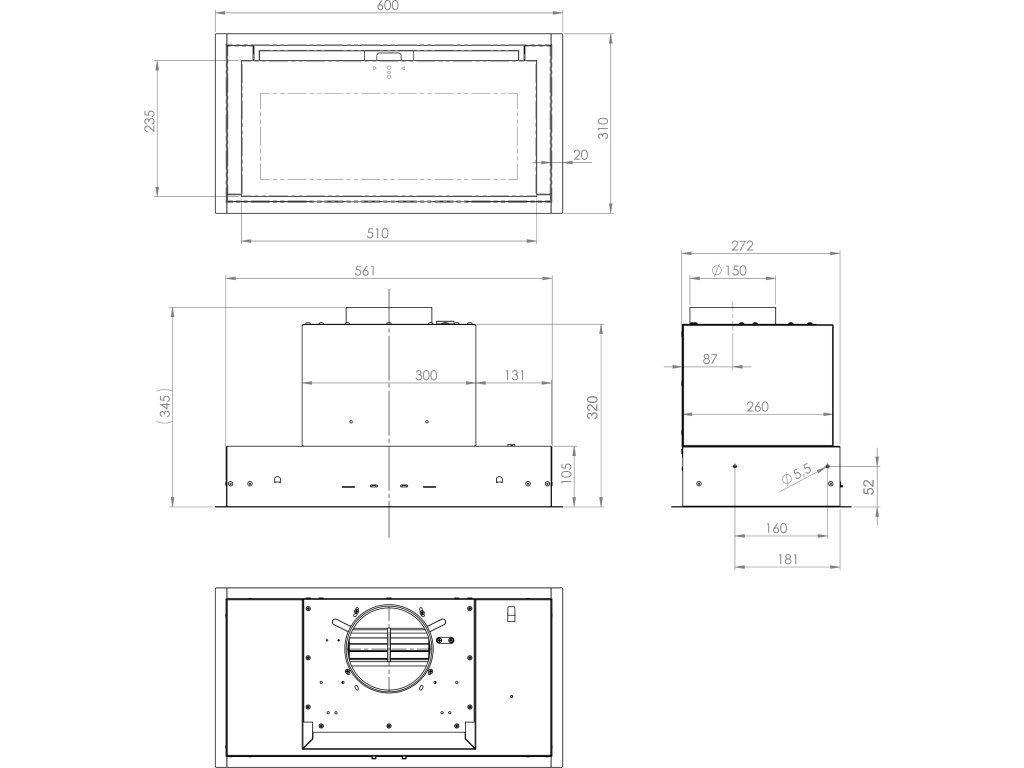 Min. vzdálenost mezi odsavačem a elektrickou varnou deskou: | 55 cm |