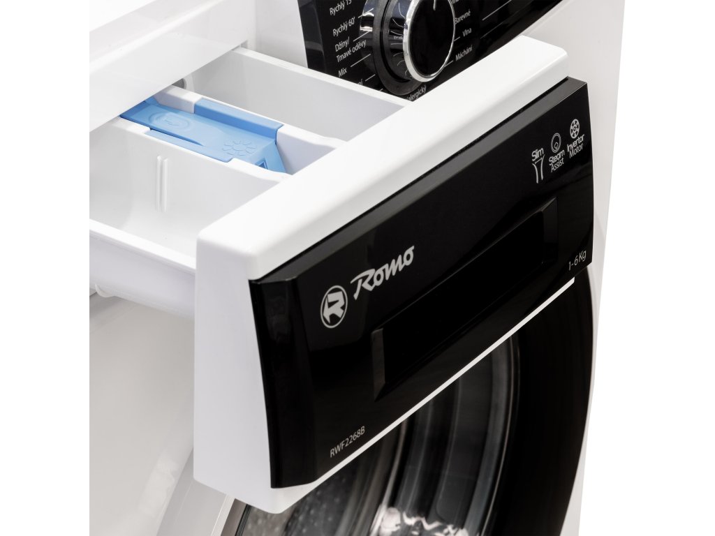 Představujeme předem plněnou pračku Romo RWF2268B, která nabízí kapacitu až 6 kg prádla a patří do úsporné energetické třídy B. Díky hloubce pouhých 41,6 cm je ideální i pro menší prostory. S otáčkami až 1200 ot./min. a funkcí Steam Assist, která podporuje praní párou, zajišťuje dokonalou čistotu prádla. Pračka je vybavena LED displejem, dotykovým ovládáním a českými popisky, což usnadňuje její používání.