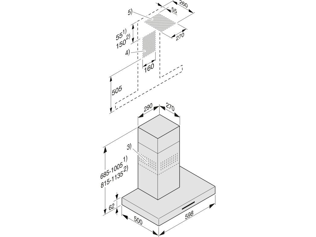 | Celková výška odsavače při cirkulaci v mm, minimum: | 815 |