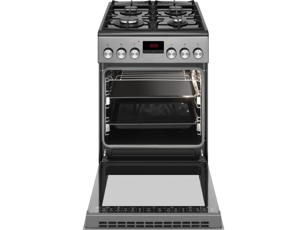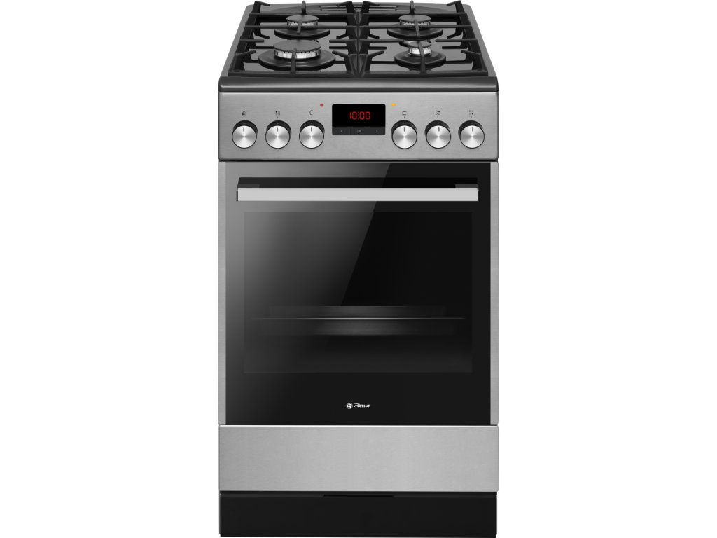 Sporák Romo RCG5014TX kombinuje elegantní nerezový design s výkonnou plynovou varnou deskou a horkovzdušnou elektrickou troubou. S objemem trouby 65 litrů a 11 funkcemi, včetně horkovzduchu a grilu, nabízí vše, co potřebujete pro perfektní vaření. Ovládací knoflíky s integrovaným zapalováním a vnitřní osvětlení trouby zvyšují pohodlí při použití.
