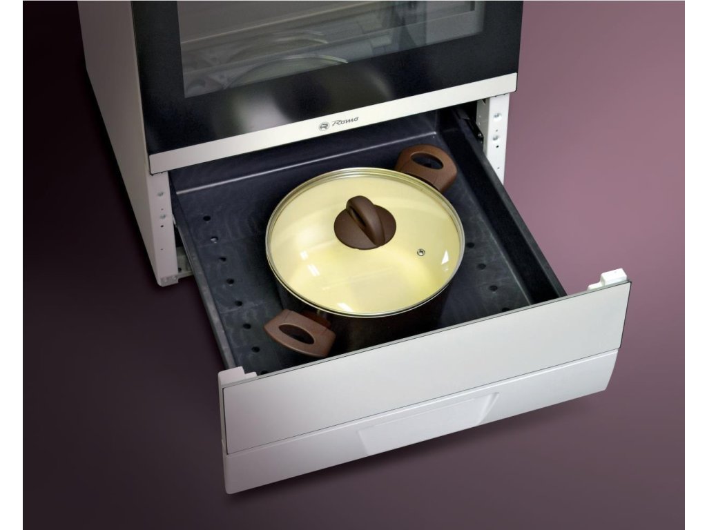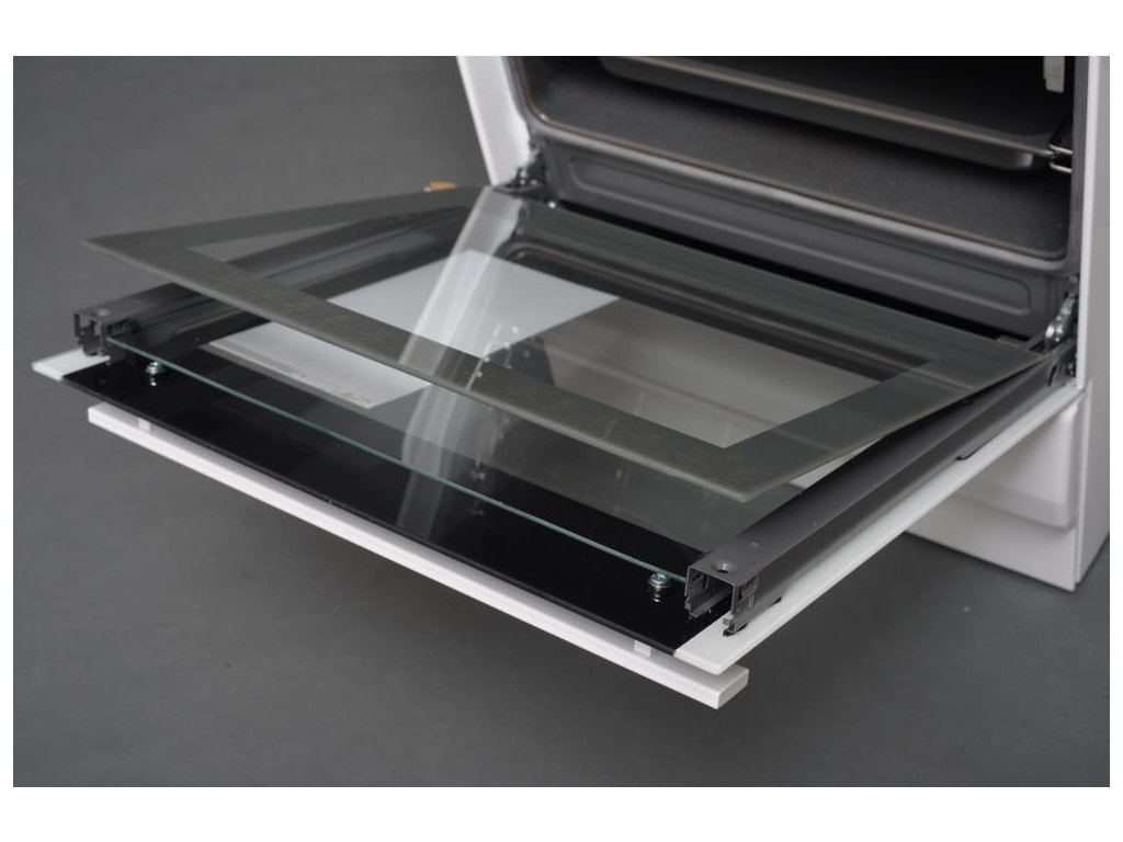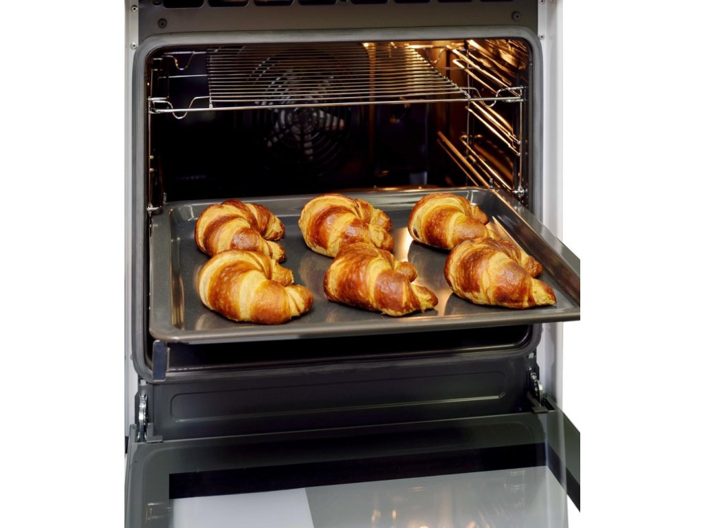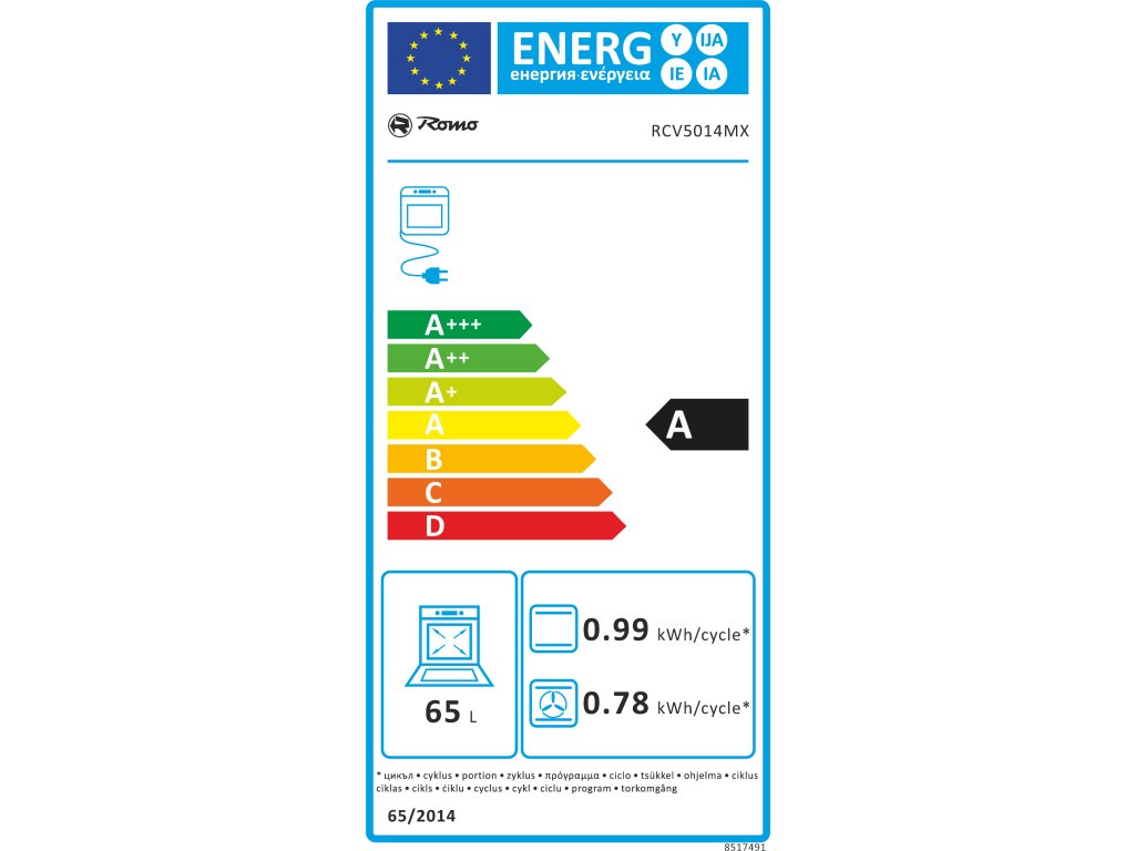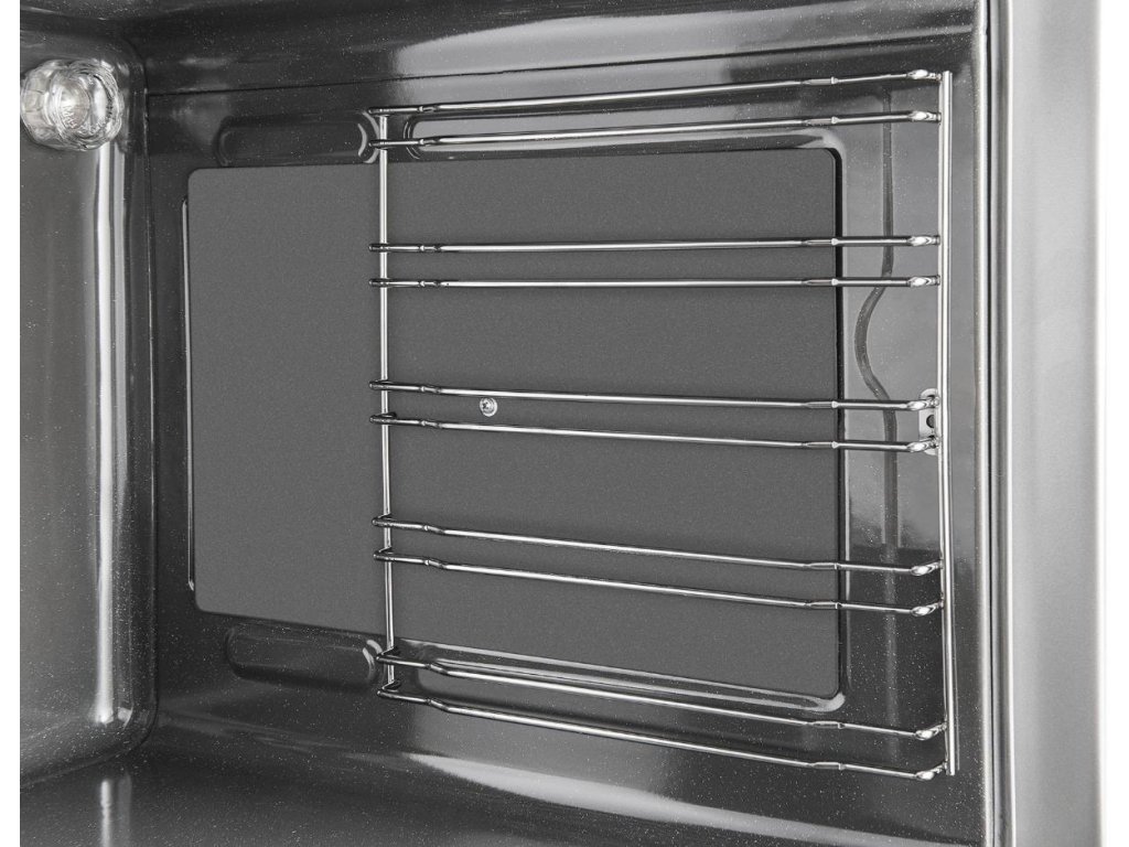 Sporák Romo RCV5014MX je vybaven 10 funkcemi trouby, které zahrnují horkovzdušné pečení, rychlý ohřev, rozmrazování nebo gril. Vnitřní osvětlení trouby a prkatický průvodce pečením na vnitřní straně dveří usnadňují pečení. Trouba má šedý smalt, který umožňuje snadné čištění, a tři skla ve dveřích, která lze jednoduše demontovat pro snadnou údržbu. Funkce SOFT CLOSE zajišťuje pomalé dovírání dvířek, což zvyšuje bezpečnost a komfort při používání.