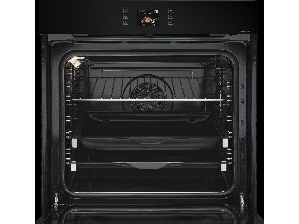 Trouba má režim AutoCook pro automatické pečení dvanácti druhů pokrmů a průvodce pro stejný počet receptů. Nabízí osm funkcí, včetně horkovzdušného pečení, variabilního grilu a udržování tepla, plus tři funkce kombinovaného pečení STEAM+ s párou. Funkce Smart Assist navrhuje ideální teplotu a dobu pečení dle zvoleného režimu.