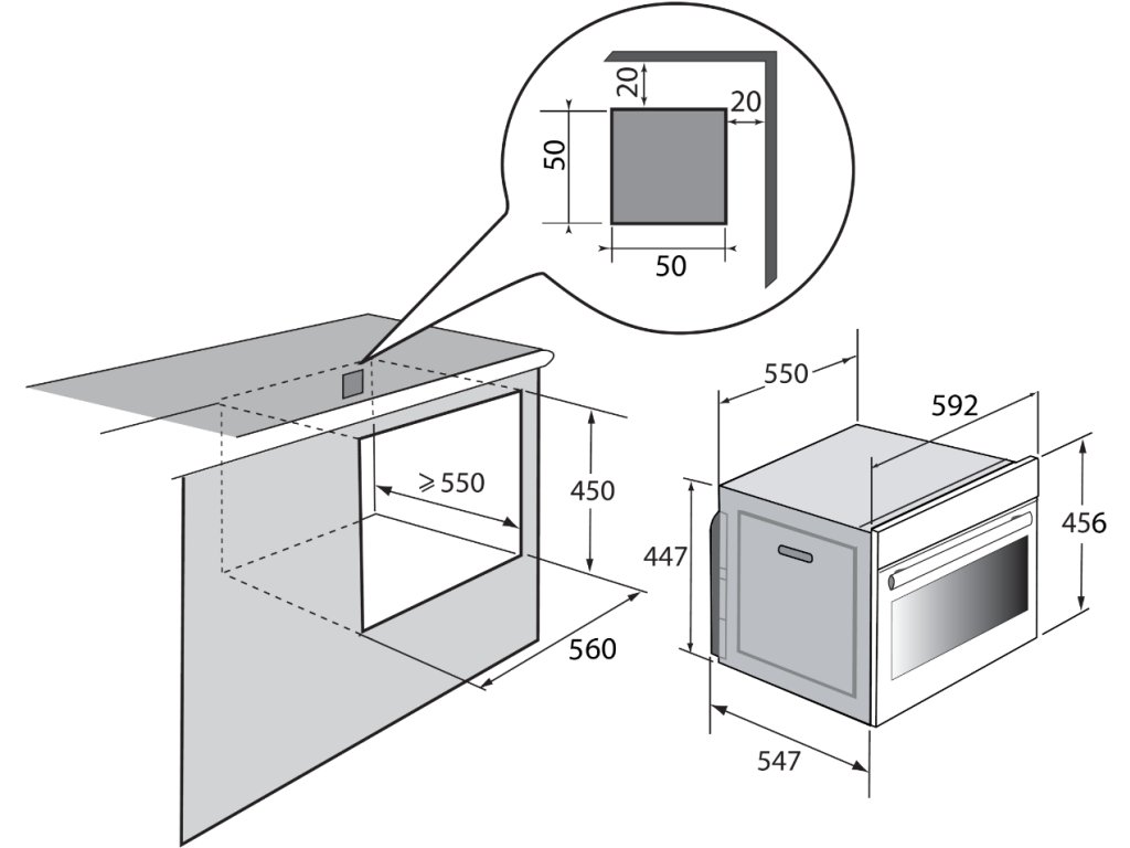 Rozměry otvoru pro vestavbu (V x Š x H): | 45 x 56 x 55 |