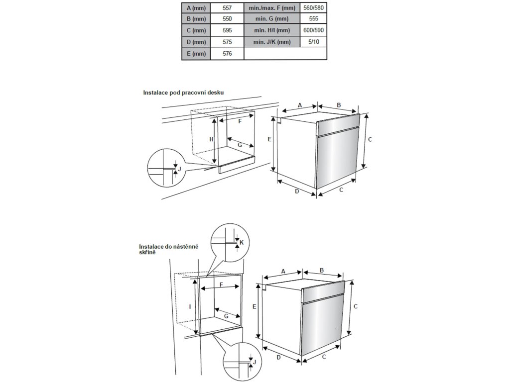 | Rozměry otvoru pro vestavbu (V x Š x H): | min./max 59/60 x min./max. 56/58 x min.55,5 |