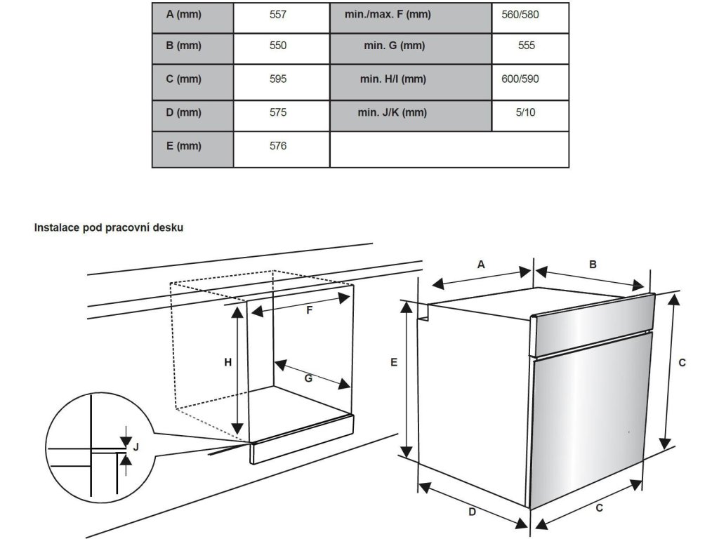 | Rozměry otvoru pro vestavbu (V x Š x H): | min./max. 59/60 x min./max 56/58 x min. 55,5 |