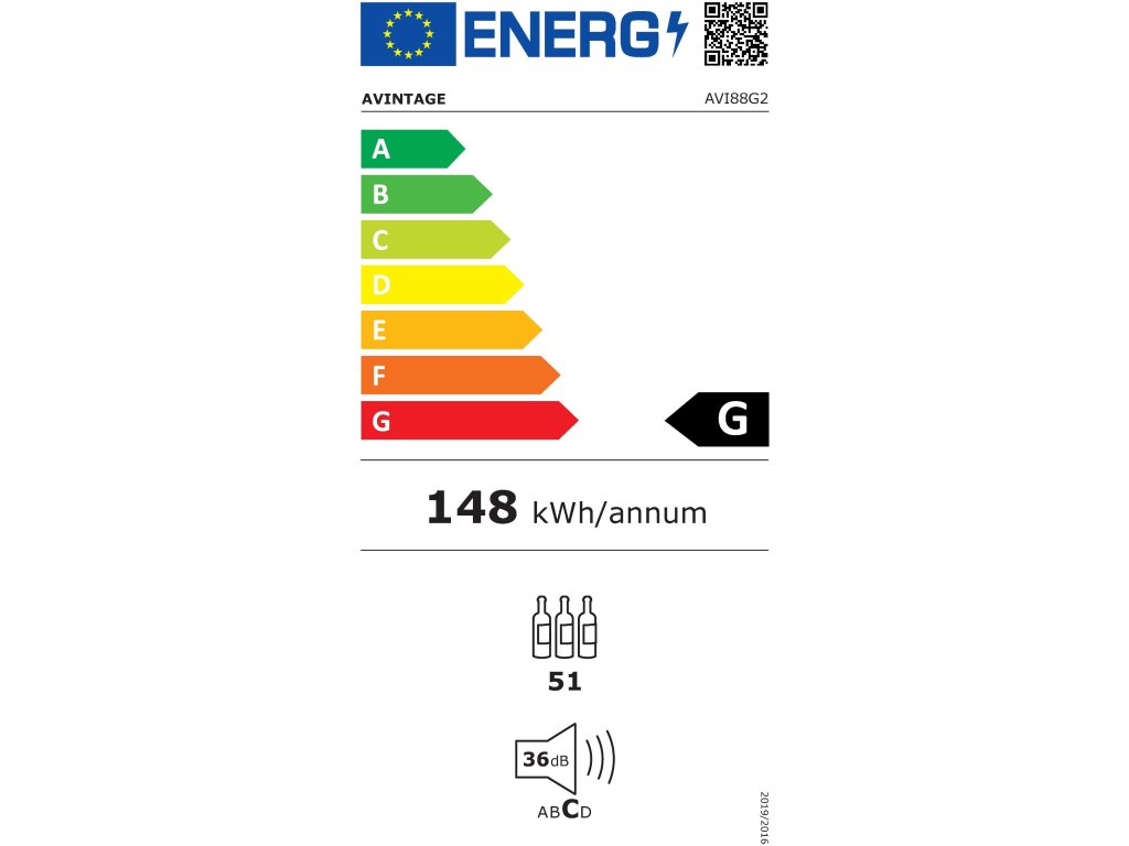 - Energetická třída G ● Roční spotřeba energie 148 kWh ● Hlučnost 36 dB