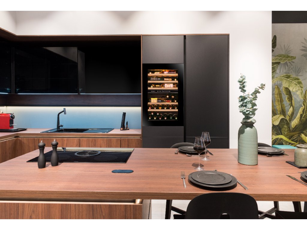 Integrované LED osvětlení je nejen praktické, ale i stylové. Umožňuje vám nastavit intenzitu i barvu osvětlení podle vašich preferencí – od studené bílé až po teplou jantarovou. Můžete si vybrat ze čtyř úrovní jasu, které pomohou vytvořit ideální atmosféru a zároveň prezentovat vaši sbírku vín v tom nejlepším světle.