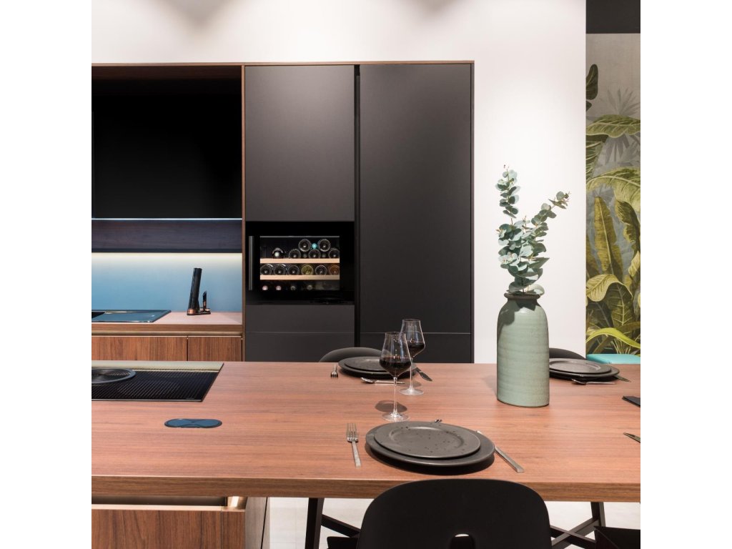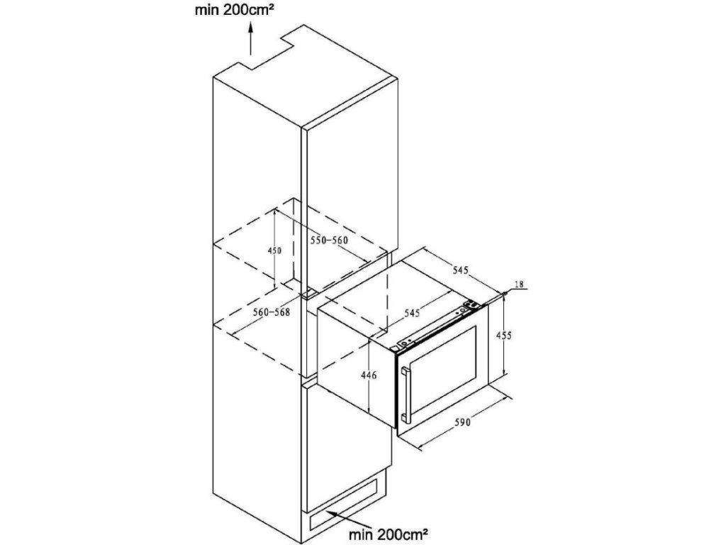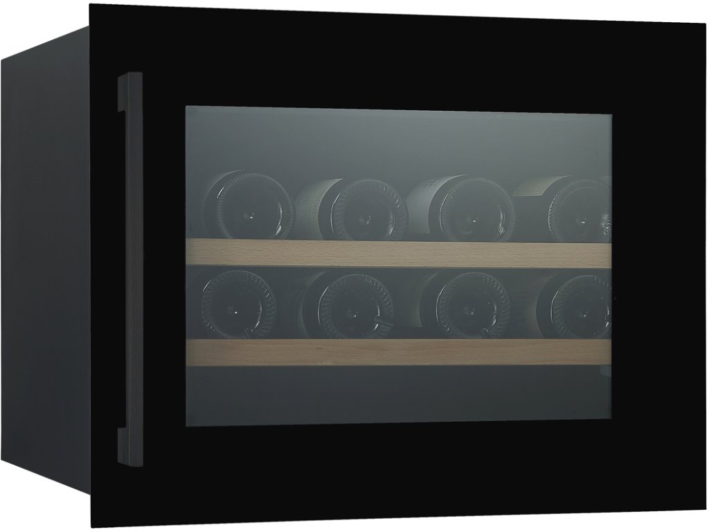 Kompaktní vestavná vinotéka; Rozsah nastavitelných teplot: 5-20 °C; Bílé LED osvětlení s vypínačem; 2 vrstvy tvrzeného skla s UV filtrem ve dveřích; Rám z černého skla s černým madlem; Elektronická regulace teploty s displejem v bílé barvě; Antivibrační systém;Chlazení kompresorem; 2 pevné police z bukového dřeva; Roční spotřeba 138 kWh; Rozměry (V x Š x H) 45,5 x 59 x 56,3 cm