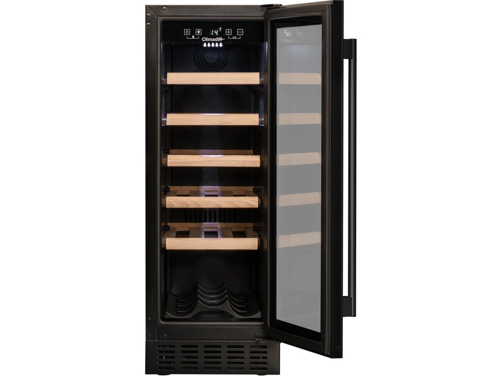 Jednozónová vestavná vinotéka; Rozsah nastavení teplot: 5-20 °C; Bílé LED osvětlení s vypínačem; 2 vrstvy tvrzeného skla s UV filtrem ve dveřích; Elektronická regulace teploty s displejem; Antivibrační systém; Automatické odmrazování; Chlazení kompresorem; 5 posuvných polic z bukového dřeva; Energetická třída F; Roční spotřeba energie: 82 kWh; Rozměry (VxŠxH): 81,5 x 29,5 x 57 cm