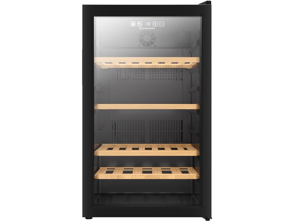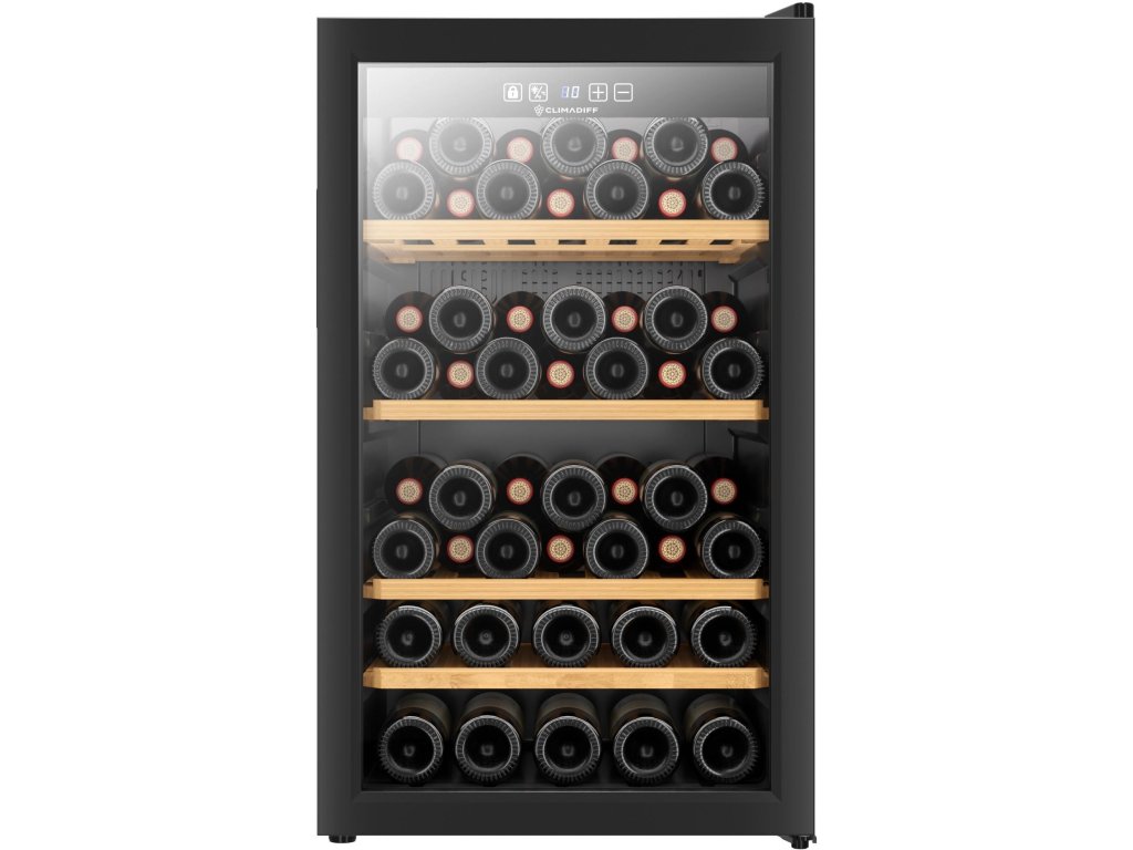 Jednozónová volně stojící servírovací vinotéka; Celková kapacita 52 lahví; Rozsah nastavení teplot: 5-20 °C; Bílé LED osvětlení s vypínačem; 2 vrstvy tvrzeného skla s UV filtrem ve dveřích; Černý rám dveří s integrovaným vertikálním madlem; Černé tělo vinotéky; 2 vrstvy tvrzeného skla s UV filtrem; Elektronická regulace teploty s displejem v bílé barvě; Antivibrační systém; Chlazení kompresorem; 4 polovýsuvné dřevěné police s dřevěným čelem z bukového dřeva; Vizuální a akustické alarmy; Klimatická třída N (16°C - 32°C); 4 výškově nastavitelné nožky až 1,8 cm; Není možnost změny směru otevírání dveří; Energetická třída G; Roční spotřeba energie 142 kWh; Hlučnost 39 dB; Hmotnost 34 kg; Rozměry (VxŠxH) 83,3 x 49,5 x 56,1 cm