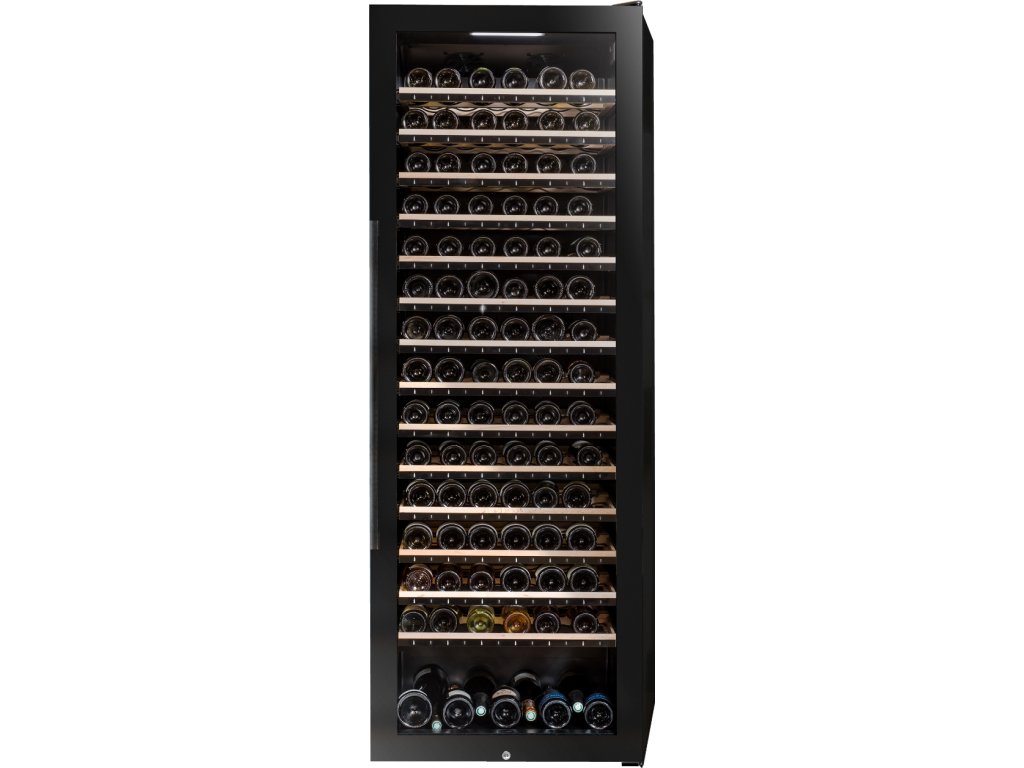 - Kapacita 185 lahví, 14 ks dřevěných polic, rozsah nastavení teplot 5-20 °C
