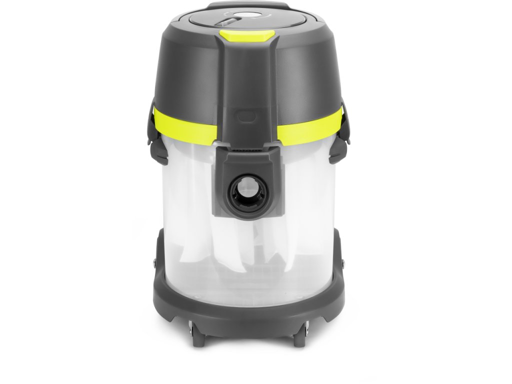 Naviják přívodního kabelu umístěný ve víku vysavače pojme 12 m kabel. Díky tomu je pracovní dosah vysavače až 16 m! 4 kolečka s gumovým dezénem propůjčují vysavači výjimečnou obratnost. Díky umístění na vozíku je pak vysavač velmi stabilní a navíc umožňuje mít 2 menší hubice vždy poruce. Nádoba vysavače je nárazuvzdorná, vyrobená z vysoce odolného polypropylénu.