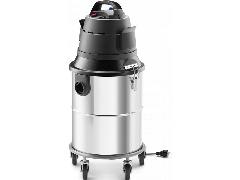 Odolná pogumovaná kolečka vysavače zajišťují vynikající manévrovatelnost a usnadňují přepravu. Odolná 40litrová nerezová sběrná nádoba pojme velké množství suti, pilin nebo stavebního prachu.