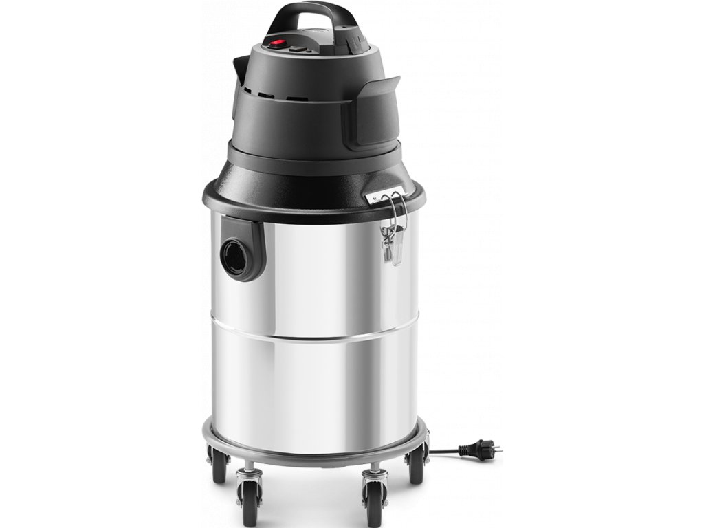 Odolná pogumovaná kolečka vysavače zajišťují vynikající manévrovatelnost a usnadňují přepravu. Odolná 40litrová nerezová sběrná nádoba pojme velké množství prachu a nečistot.