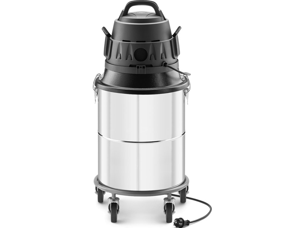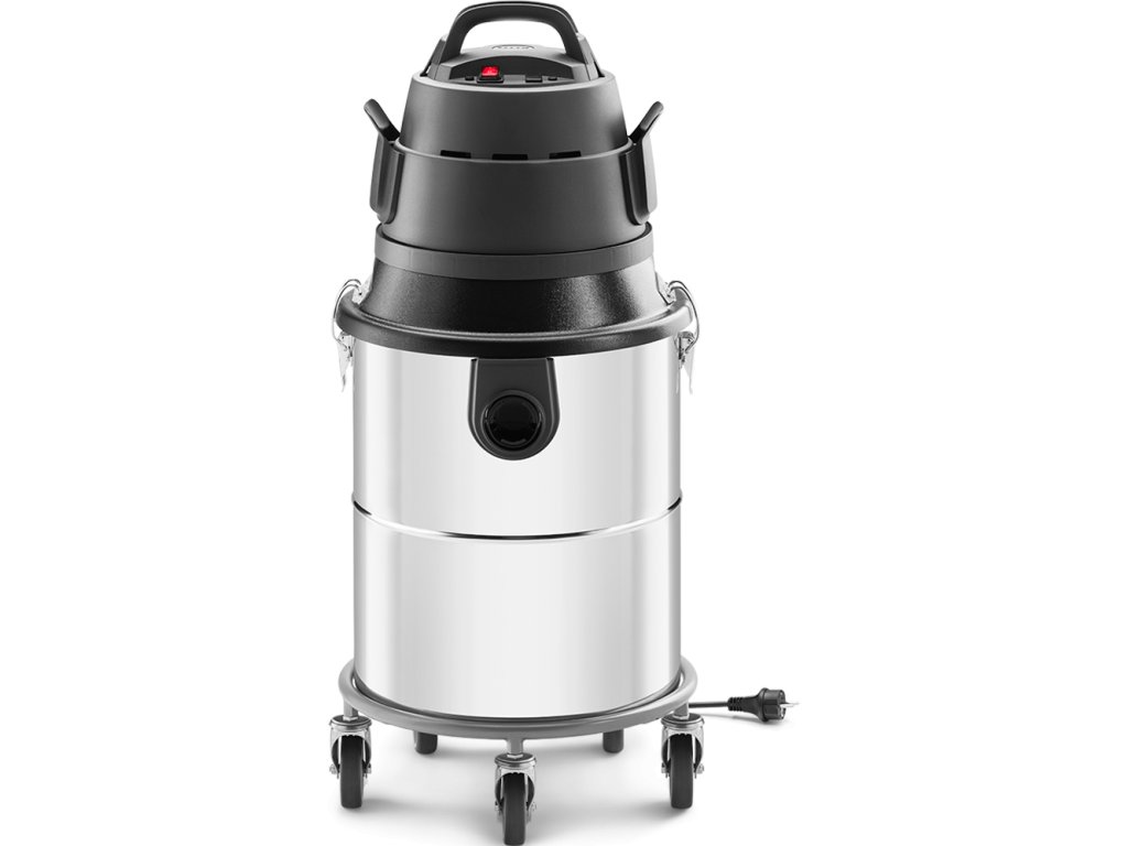 Odolná pogumovaná kolečka vysavače zajišťují vynikající manévrovatelnost a usnadňují přepravu. Odolná 40litrová nerezová sběrná nádoba pojme velké množství prachu a nečistot.