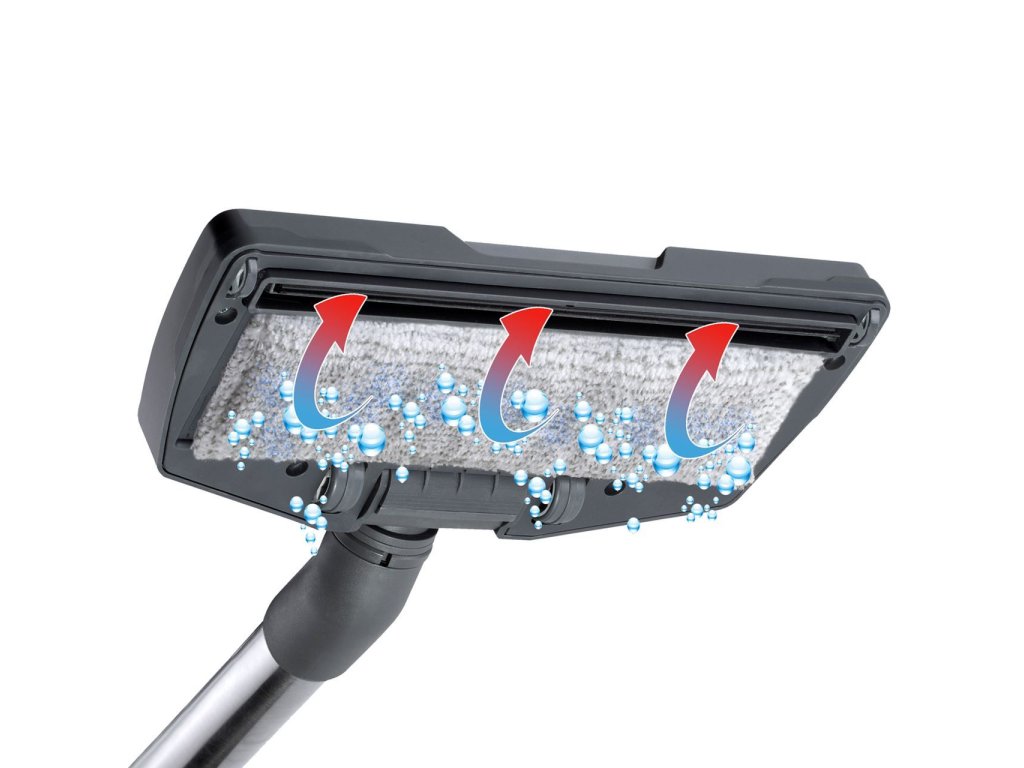 kolečka Easy-Drive; Dálkové ovládání na madle, kterým lze regulovat intenzitu vysávání a vypínat a zapínat přístroj; Parketová hubice AquaStealth+ útěrky;